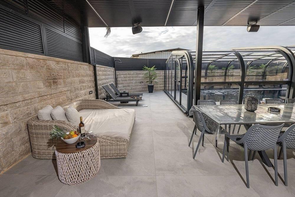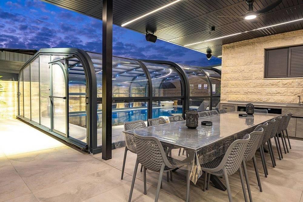 נוסיף כי - בריכת השחיה מחוממת ומקורה בקירוי מיוחד עבור עונת החורף