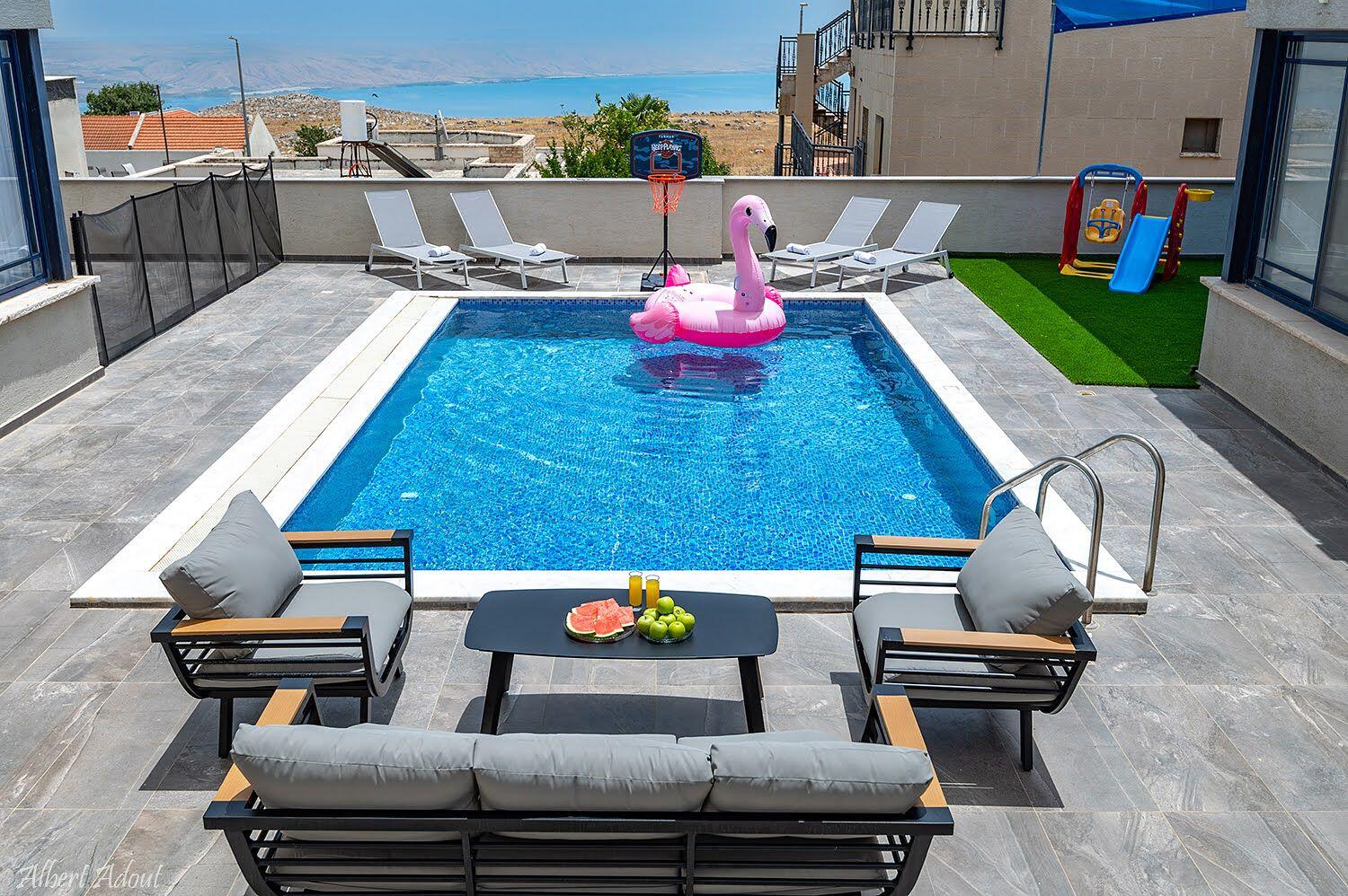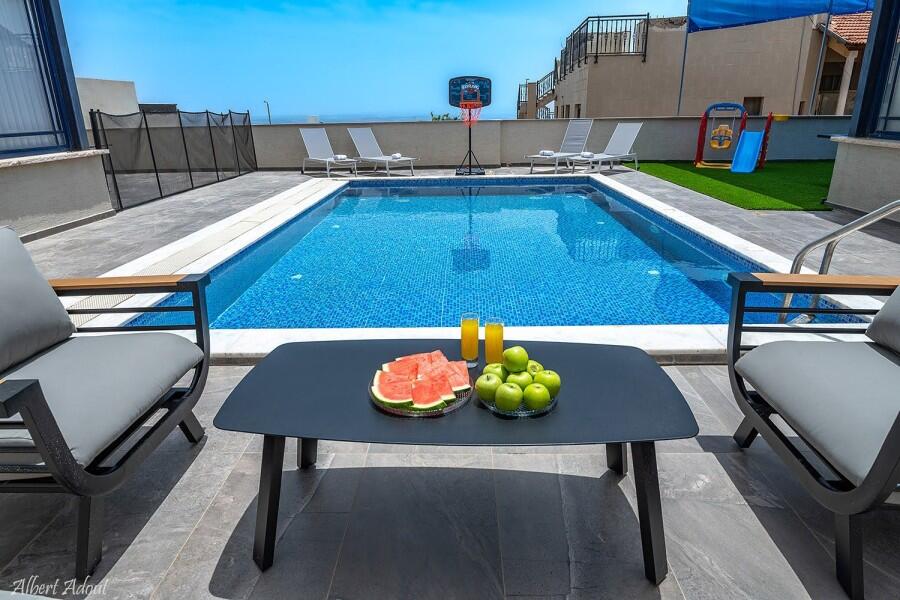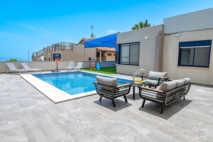 הוילה כוללת 6 חדרי שינה יוקרתיים, 2 מהם חדרי מאסטר עם חדרי רחצה פרטיים. 3 חדרי רחצה נוספים בוילה סלון מרווח עם טלוויזיה בכבלים, פינת אוכל גדולה ומטבח מאובזר כך שתהיו מסודרים ומאורגנים לכל ארוחה. בחצר המתחם תהנו מבריכת שחיה מחוממת מקורה ומגודרת, ג'קוזי ספא מפנק, פינת מנגל לערבי ברביקיו משפחתיים, ומתקני משחקים לילדים.