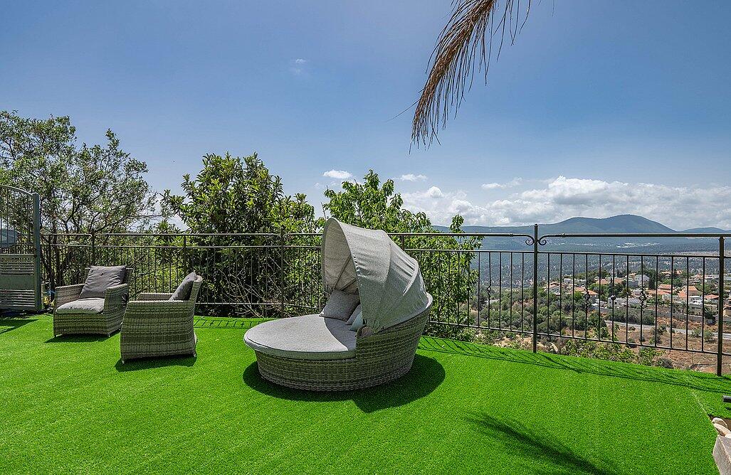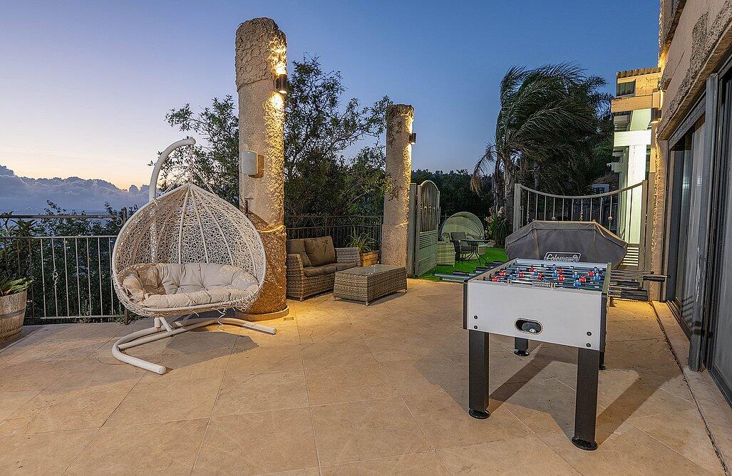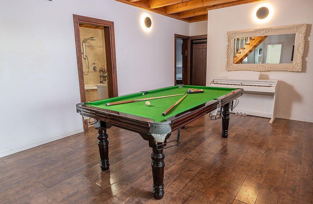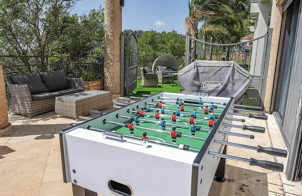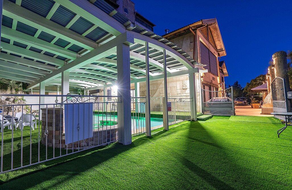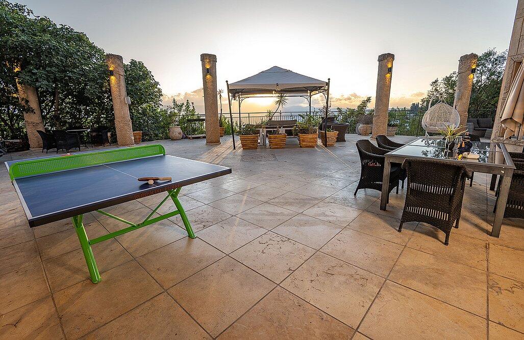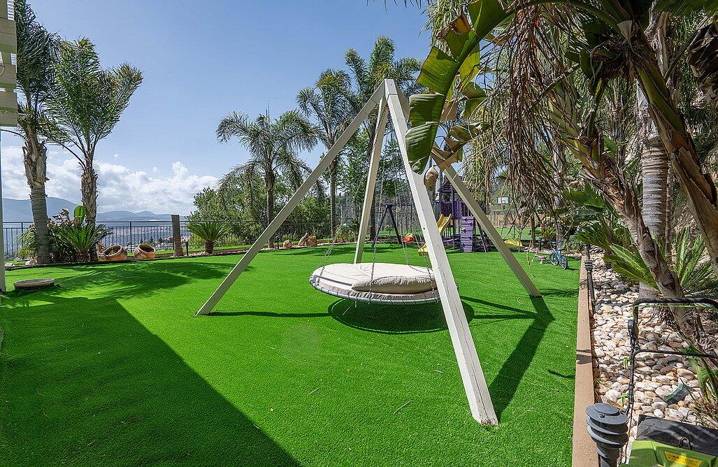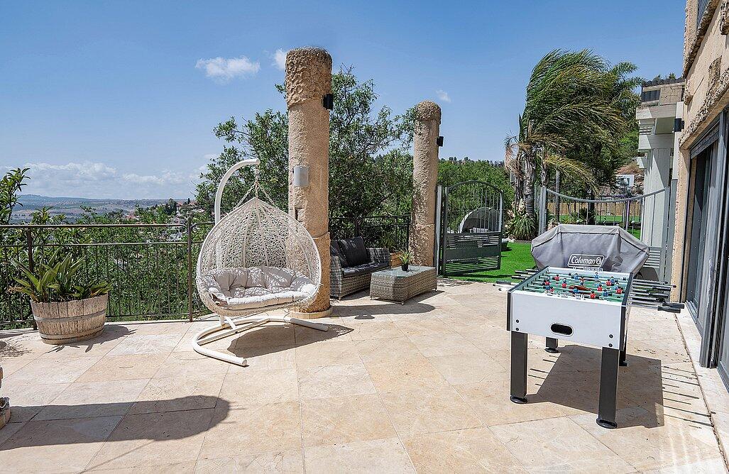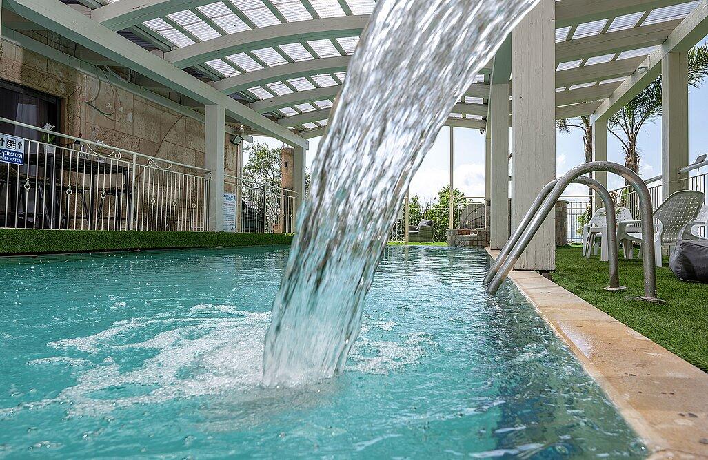 בריכת שחייה פרטית מחוממת מקורה עם מפל מים, ג'קוזי פתוח, מגרש כדורגל וכדורסל, פינת משחקים לילדים ושולחנות ביליארד – חו"ל בצפת.
