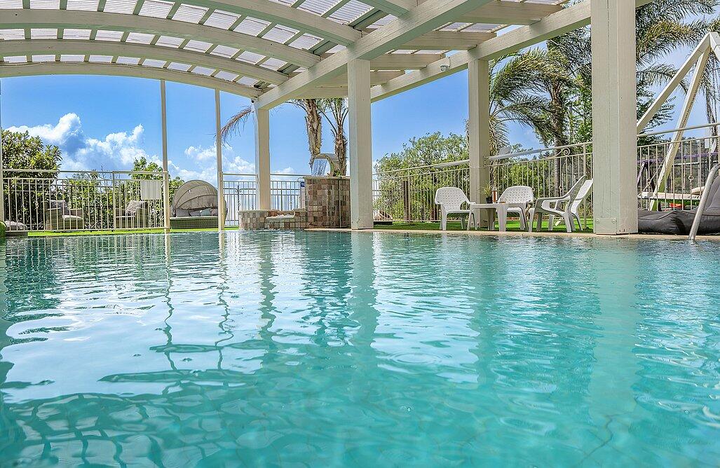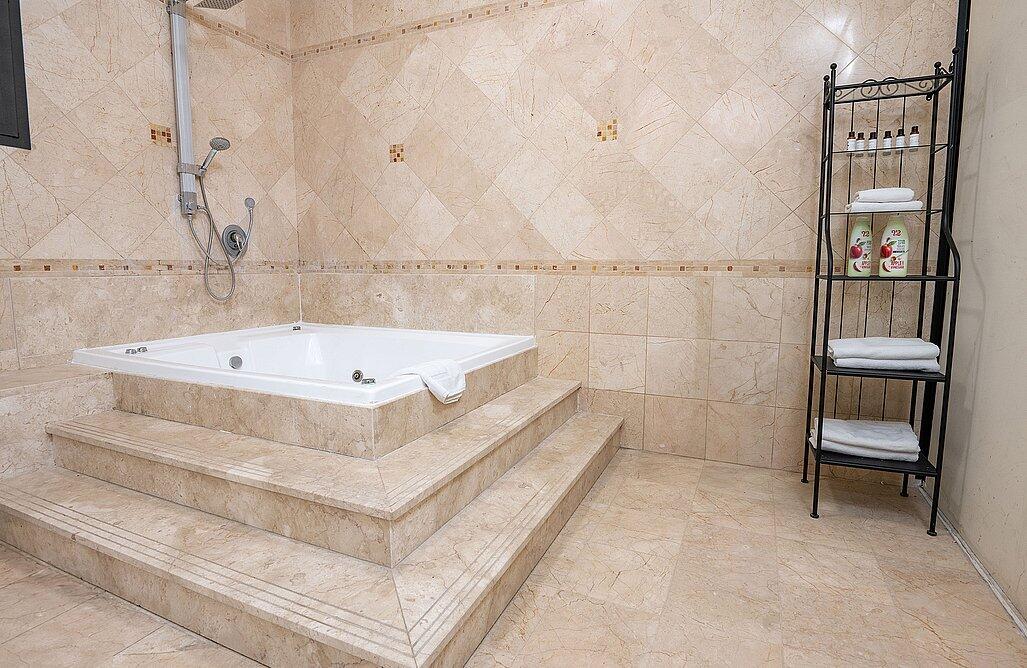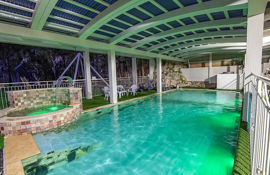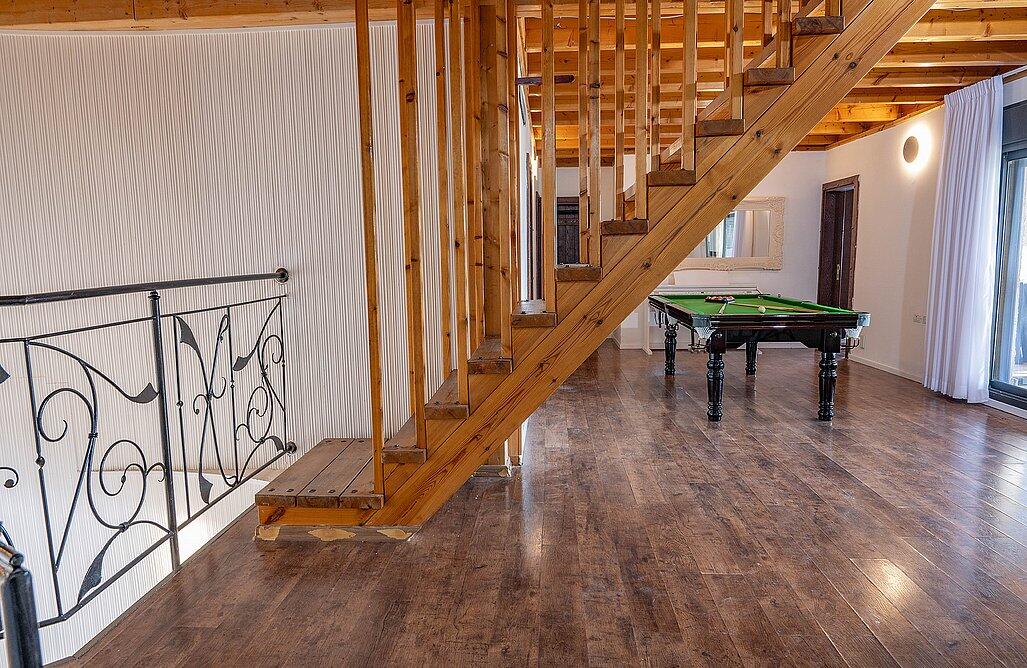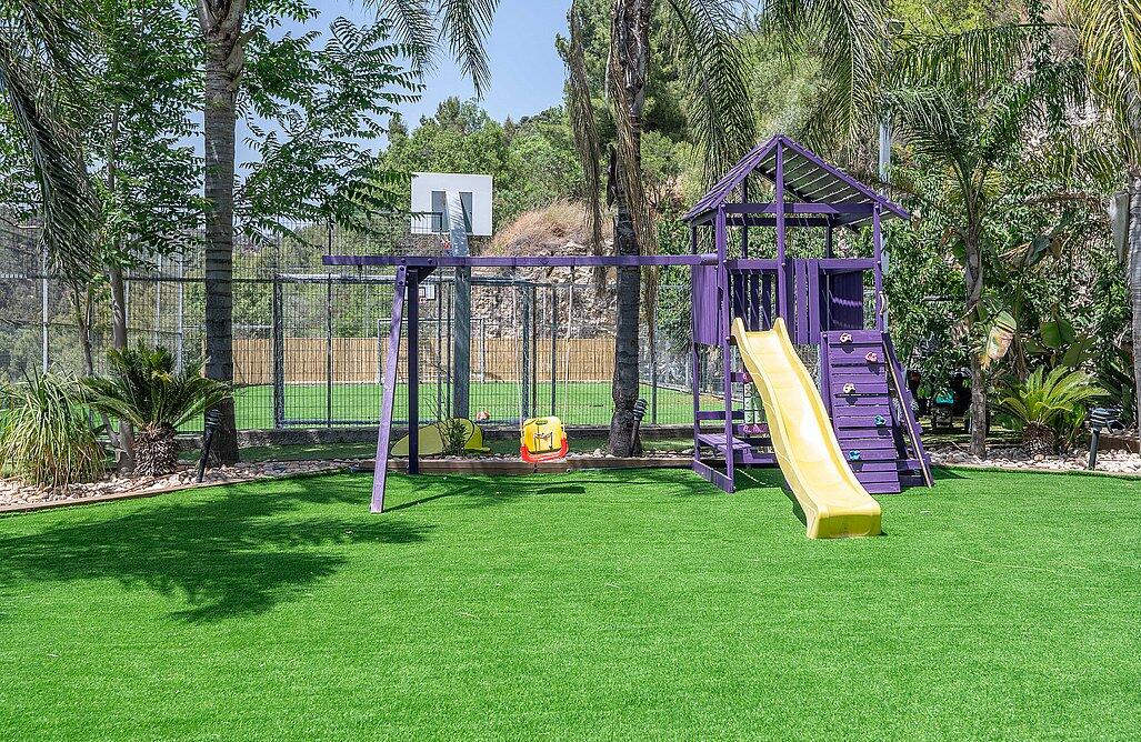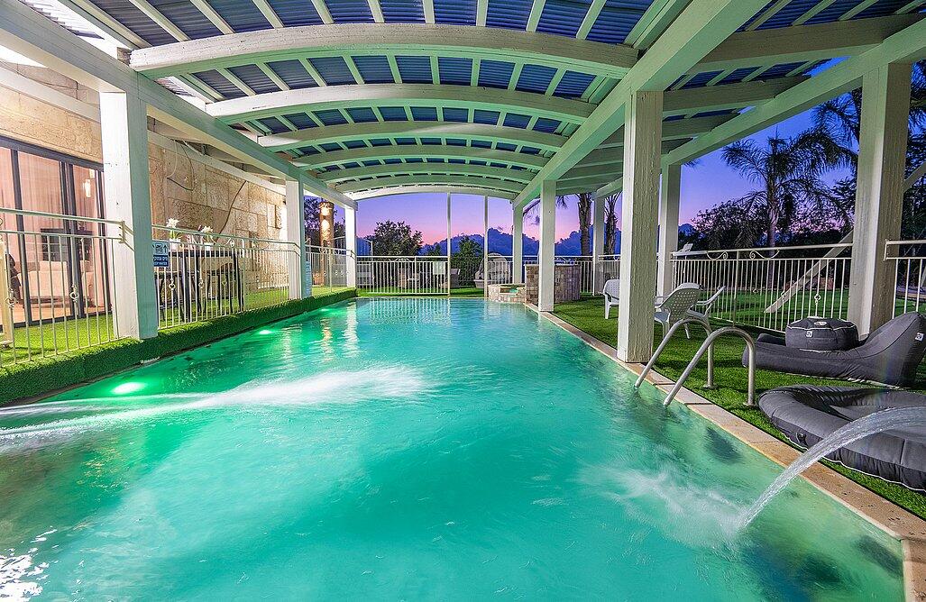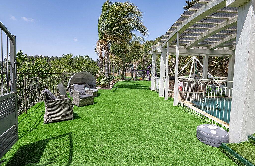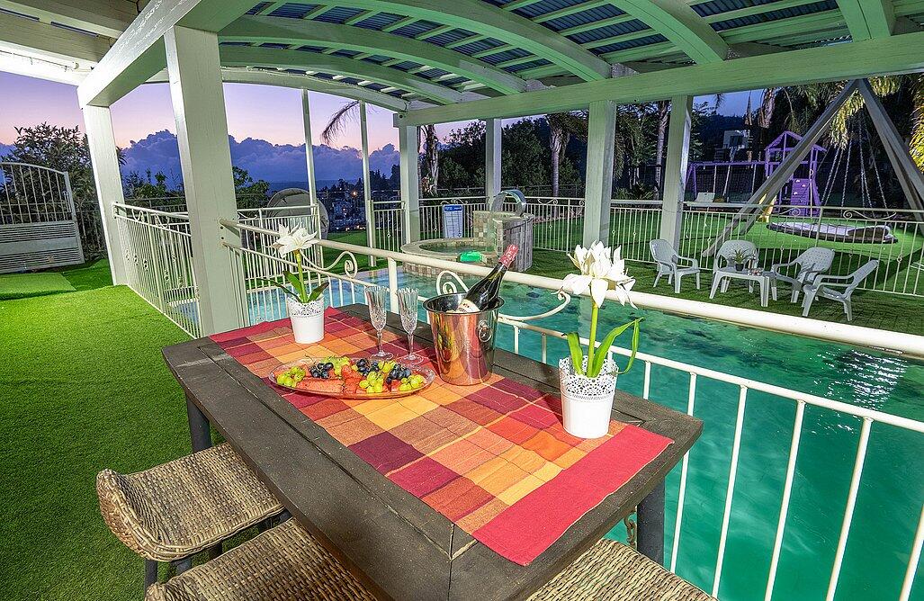 בריכת שחייה פרטית מחוממת מקורה עם מפל מים, ג'קוזי פתוח, מגרש כדורגל וכדורסל, פינת משחקים לילדים ושולחנות ביליארד – חו"ל בצפת.