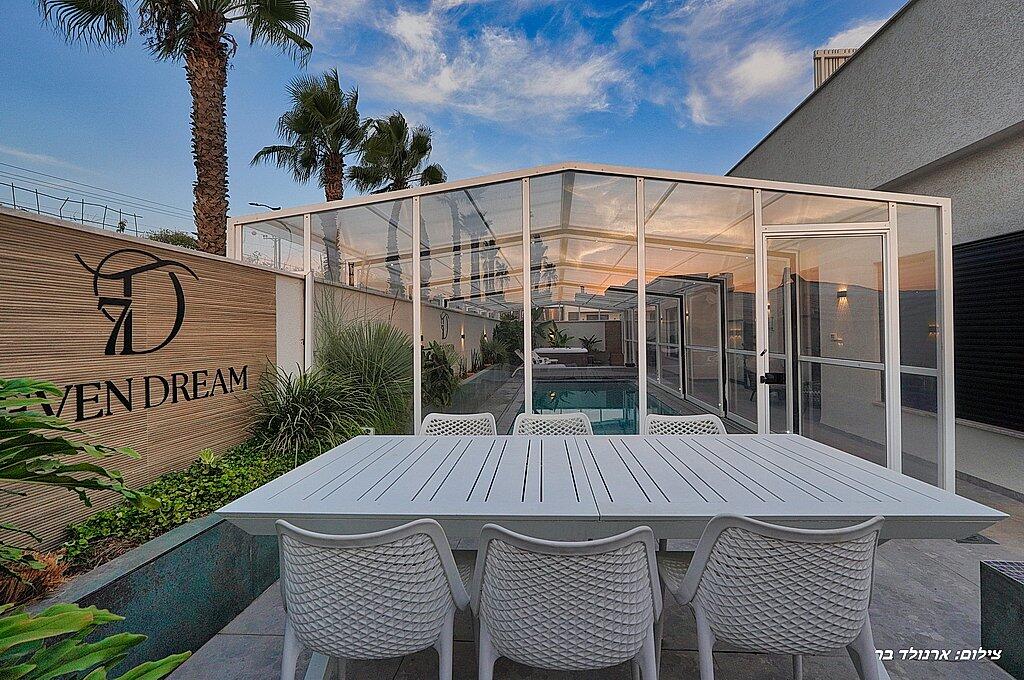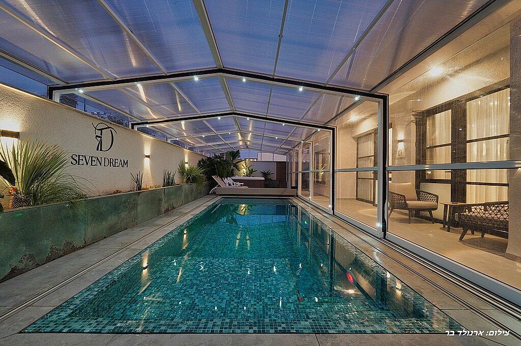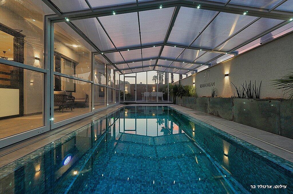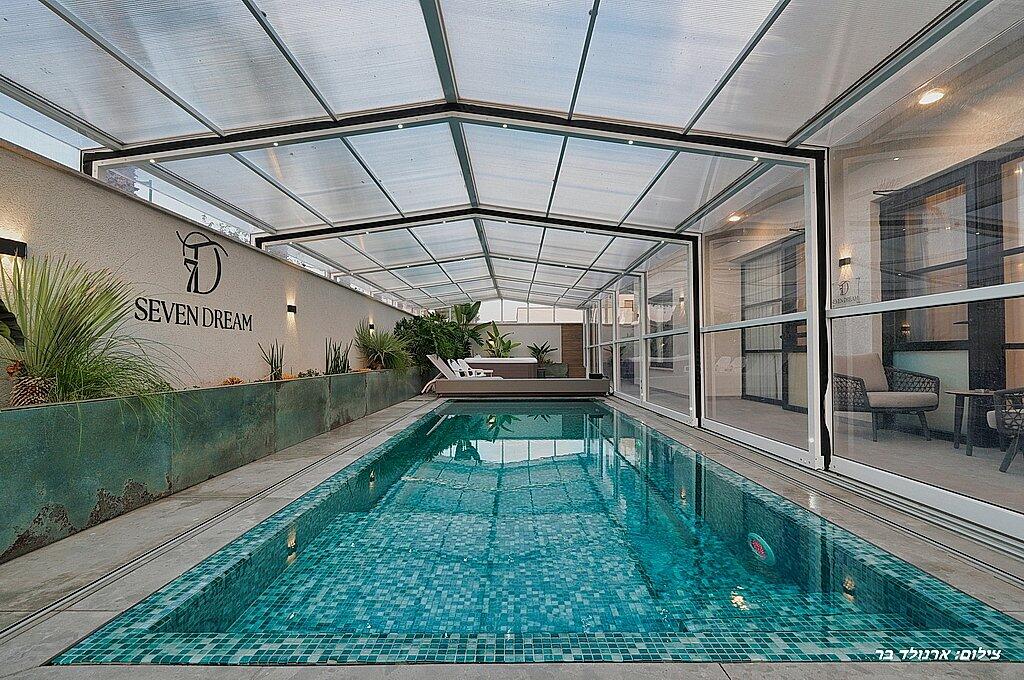בסוויטה יחכו לכם בריכת שחיה גדולה מחוממת מקורה ומפנקת, חצר ענקית, ג'קוזי ספא, מטבח מאובזר קומפלט, פינות ישיבה ושיזוף ועוד שלל פינוקים!