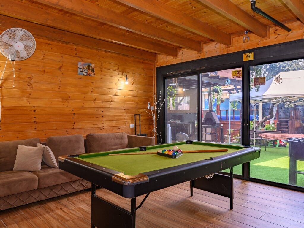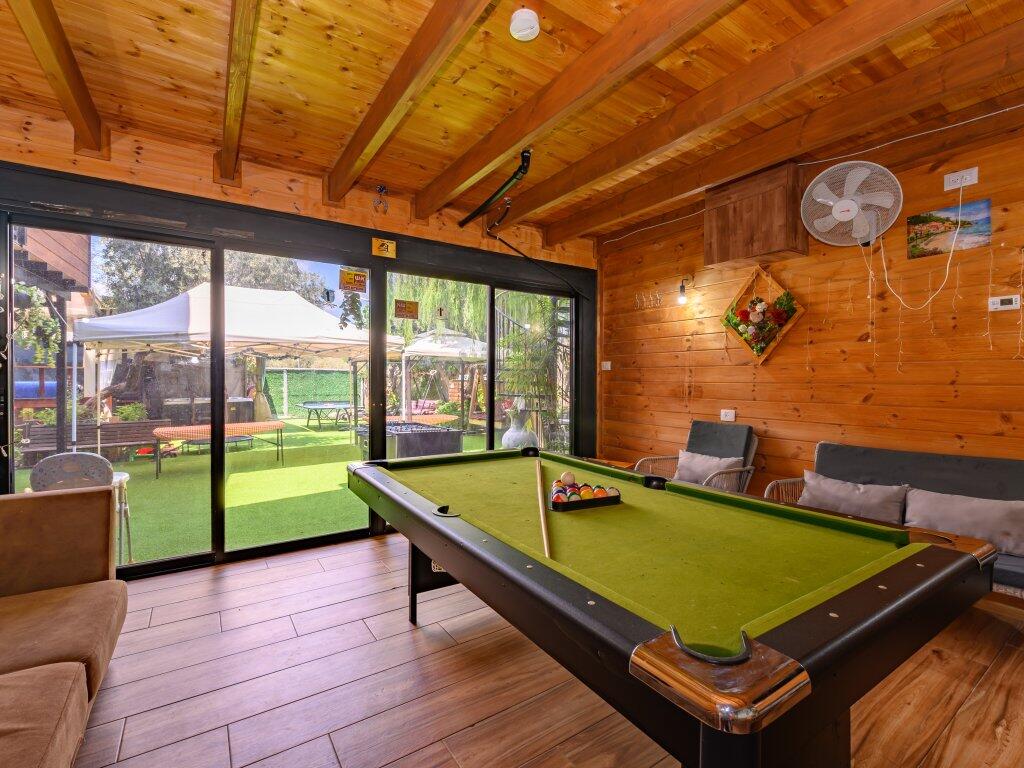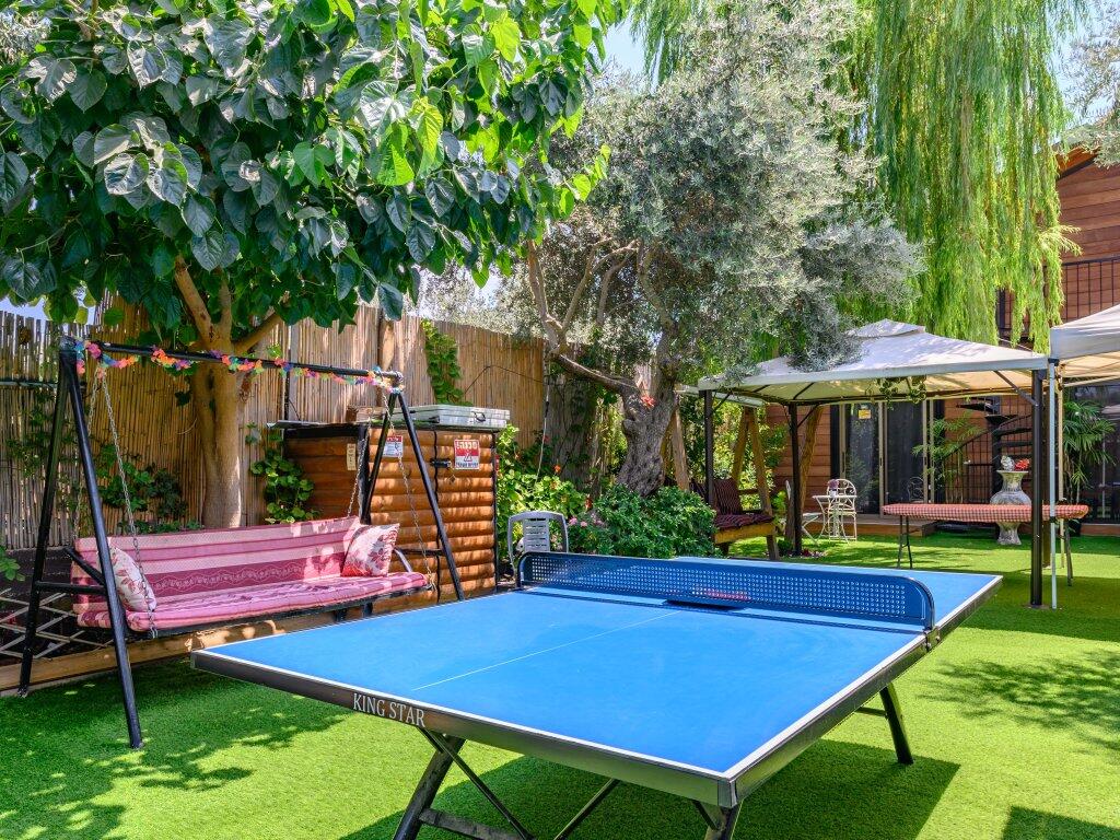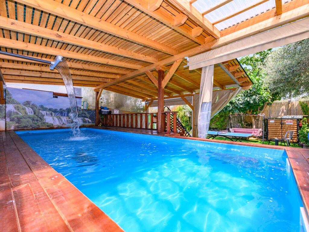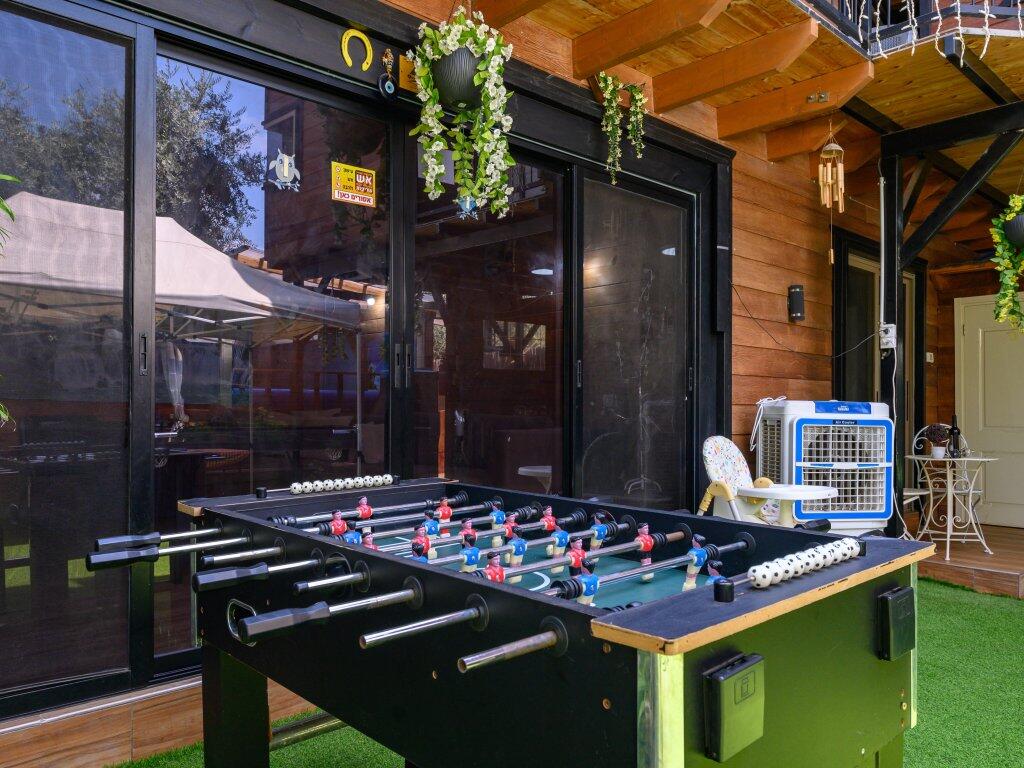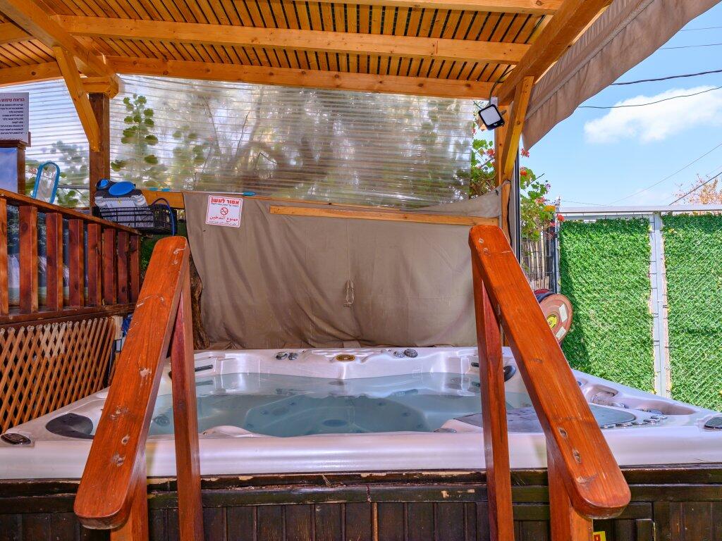 מתחם חיצוני משגע עם בריכת שחייה מחוממת ומקורה בחורף, ג'קוזי ספא ומלא משחקים לכל המשפחה.