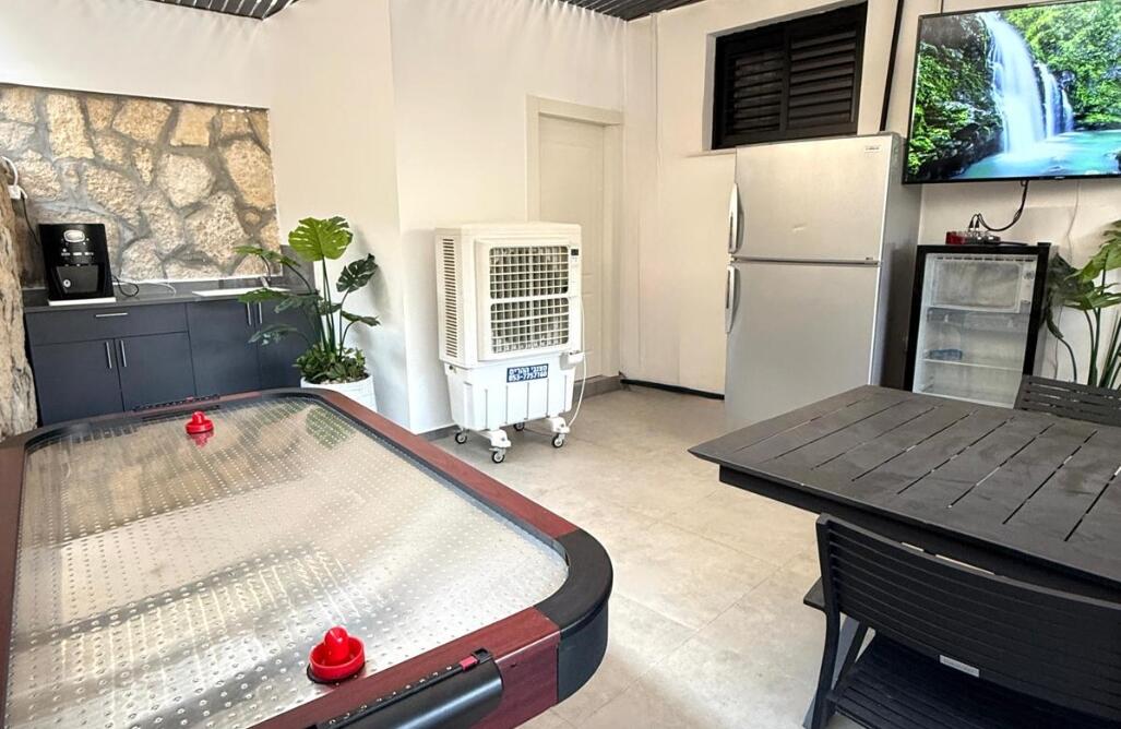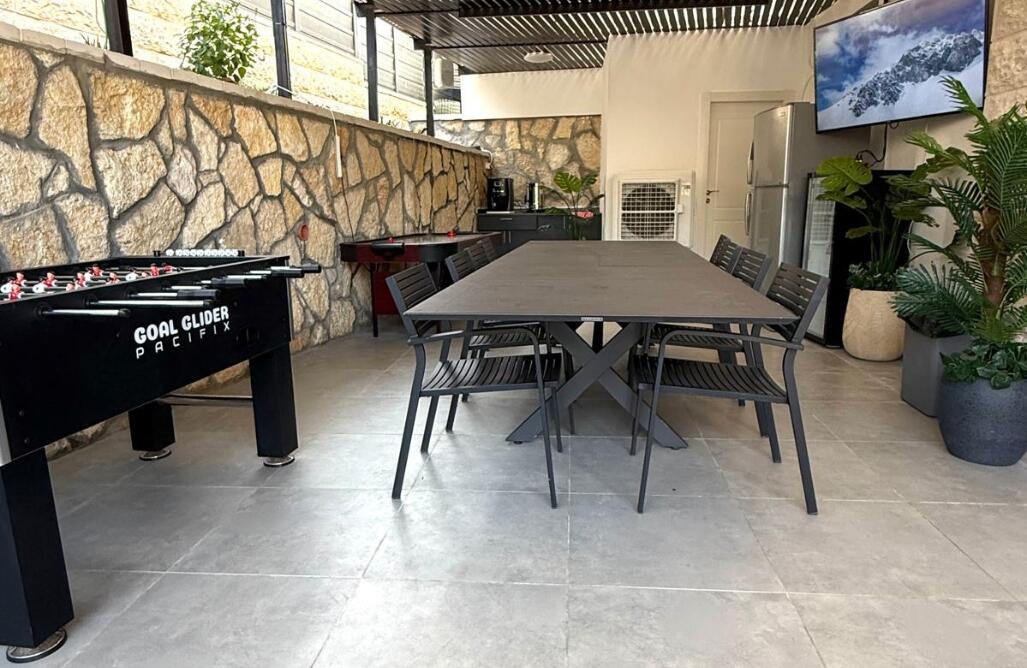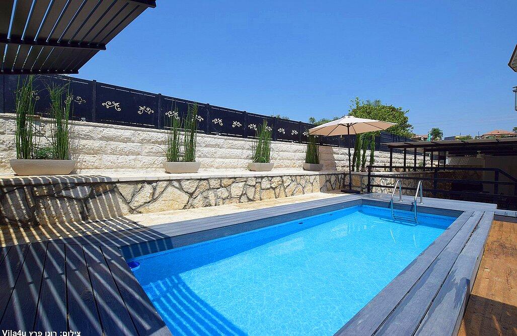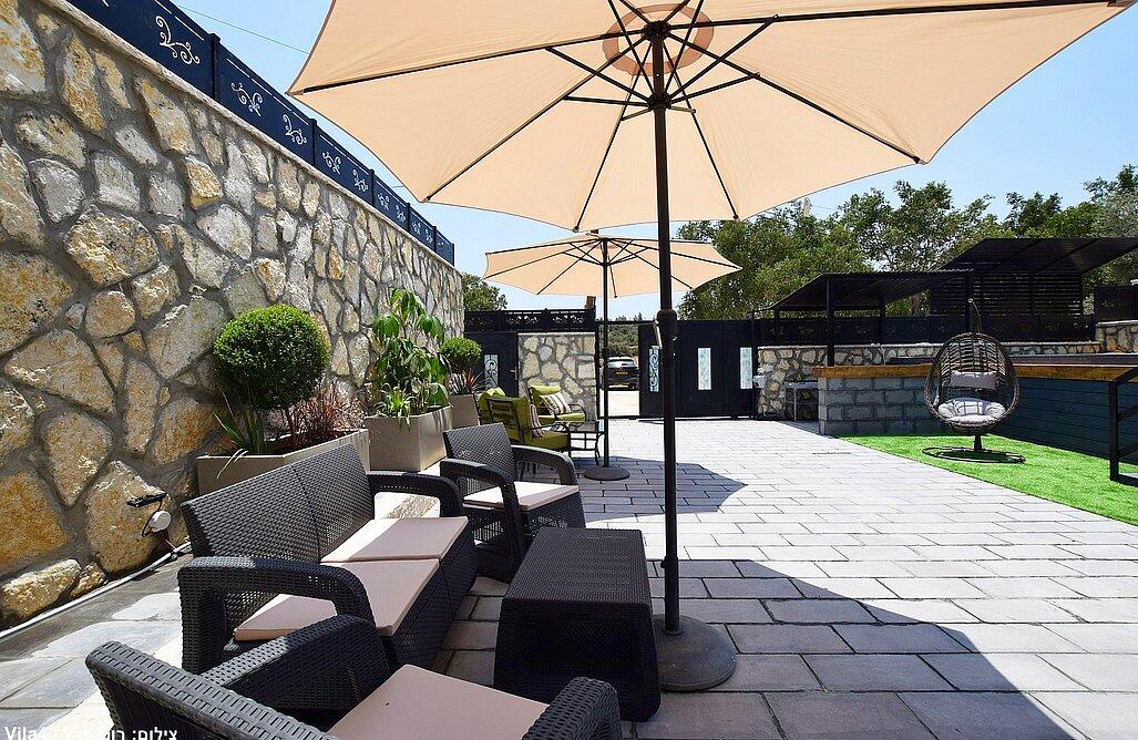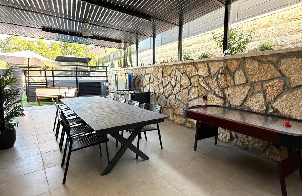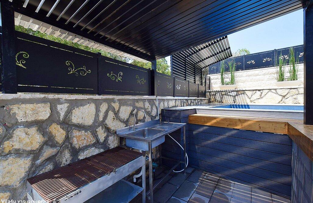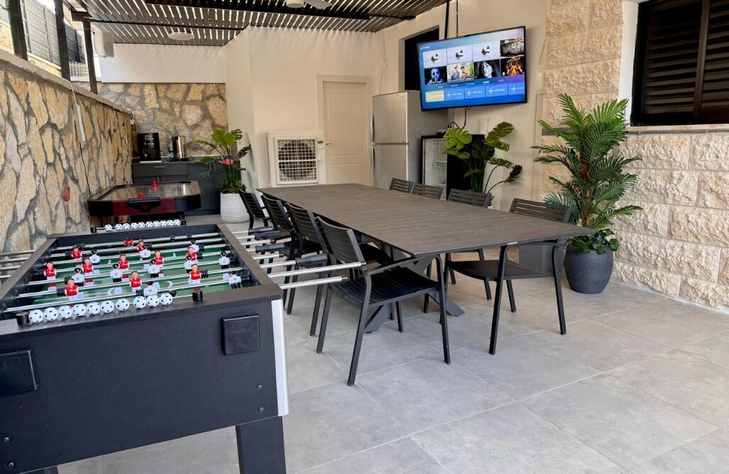 החצר רחבת ידיים ומציעה בריכה צלולה ובטיחותית, ריהוט גן מפנק, בר חיצוני, עמדת BBQ, מקרר חיצוני ומשחקי שולחן מהנים.