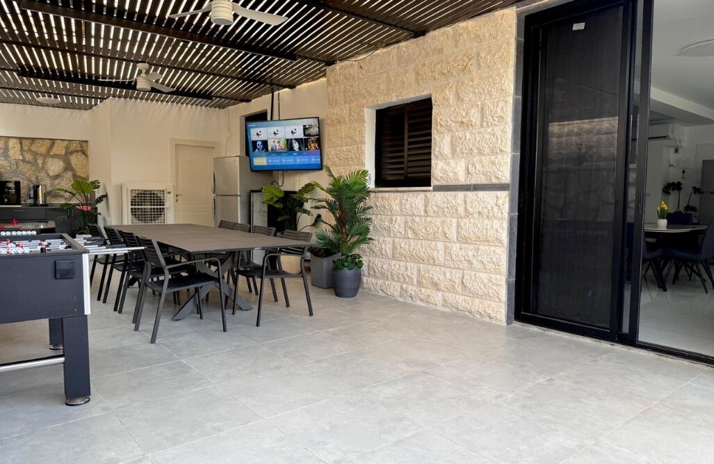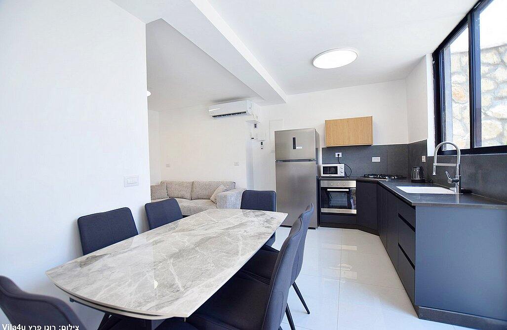 המתחם כולל 4 חדרי שינה מאובזרים, סלון גדול, מטבח ביתי ופינת אוכל.