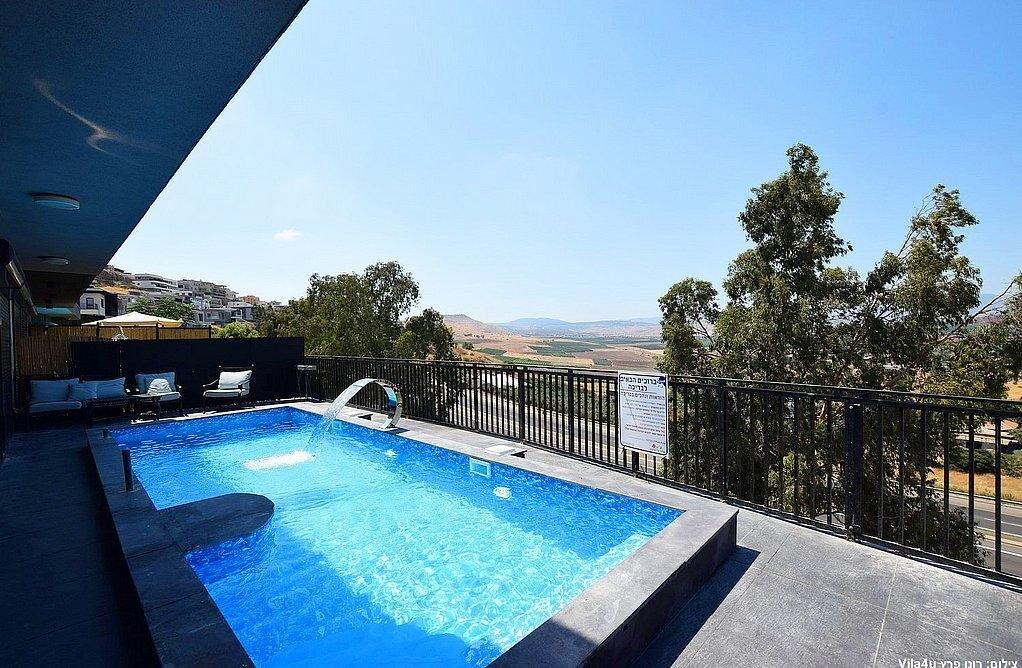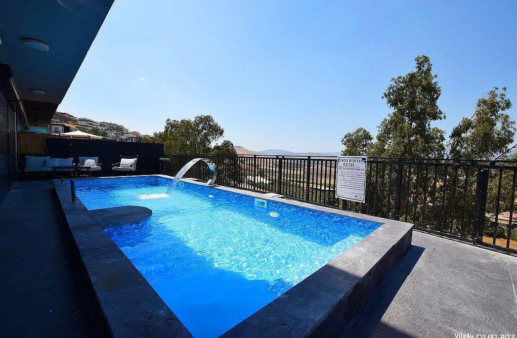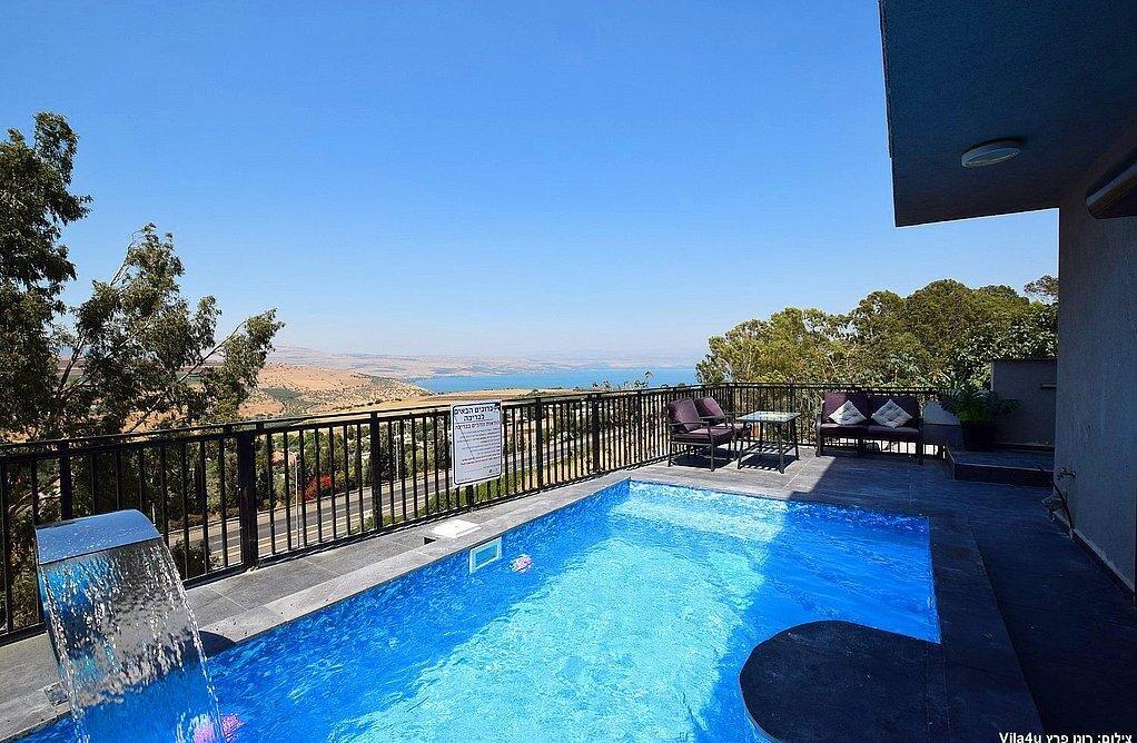עם 6 חדרי שינה זוגיים ו 2חדרי ילדים, בריכה אל הנוף ומפל מים, ג'קוזי ספא מקורה, שולחן גדול במרפסת מקורה אל מול הנוף, מטבח מאובזר מלא, 3 חדרי רחצה, 2 סלונים, עמדת מנגל והכל עם אירוח חם ולבבי בעיר טבריה הנעימה