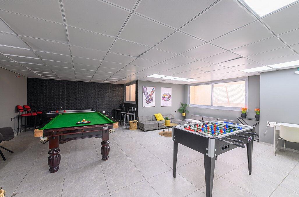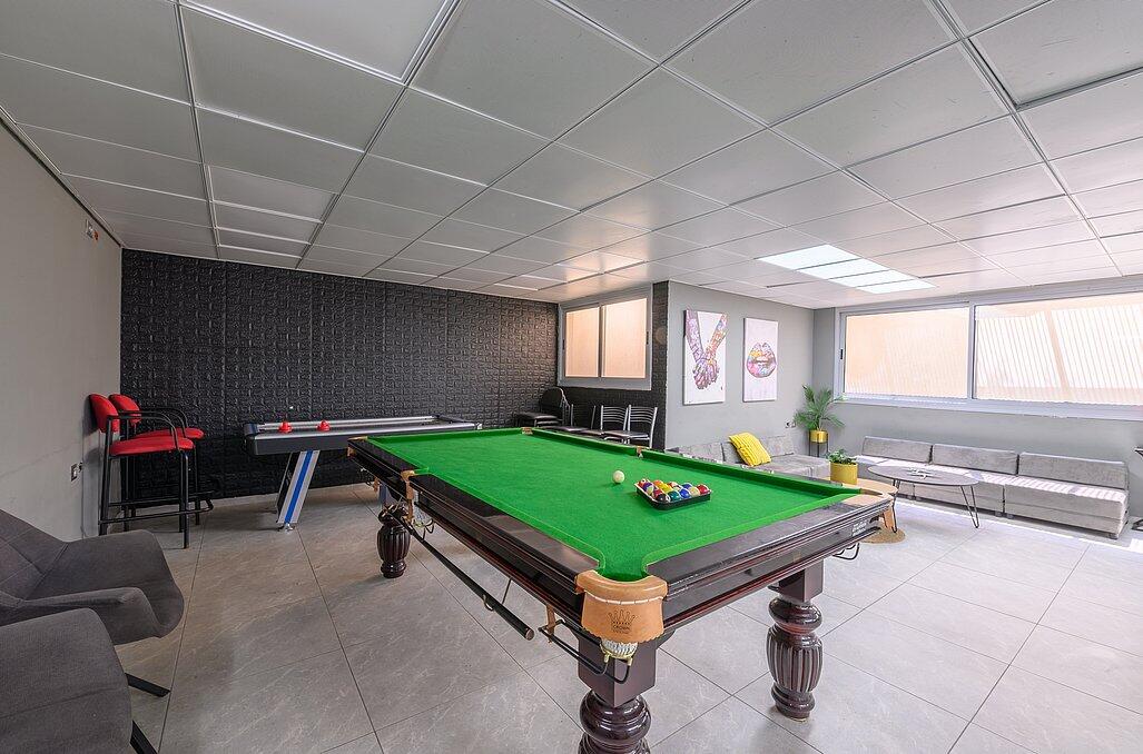 לוילה מתחם של בריכה וג'קוזי ספא. לוילה יש שולחנות משחק של הוקי אוויר, סנוקר ושולחן כדורגל.