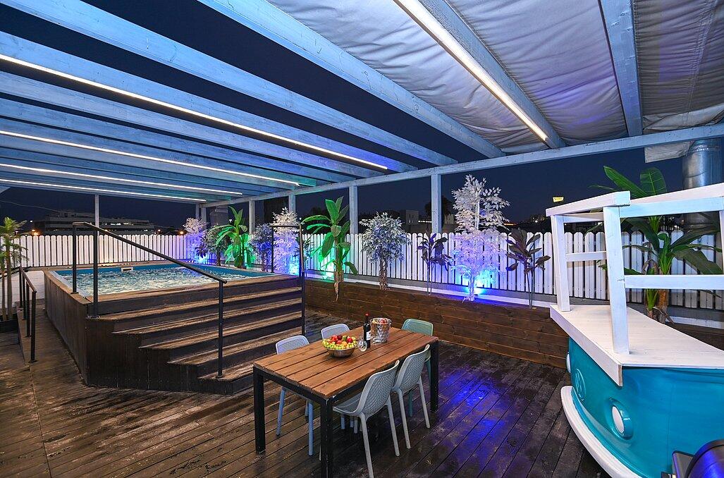 קומת גג – מתחם אירועים אורבני שלא כדאי לפספס! מחפשים את הדבר הבא? אירוע באווירה מיוחדת? עיצוב עם שיק? זה המקום בשבילכם! קומת גג מציעה חלל פנימי, קריוקי, סלון מעוצב, חדר שינה, מערכת שמע מתקדמת וחצר עם בריכה, ג'קוזי, פינות ישיבה ועוד. מתאים לכל סוגי האירועים עם לינה ללילה אחד בלבד.
