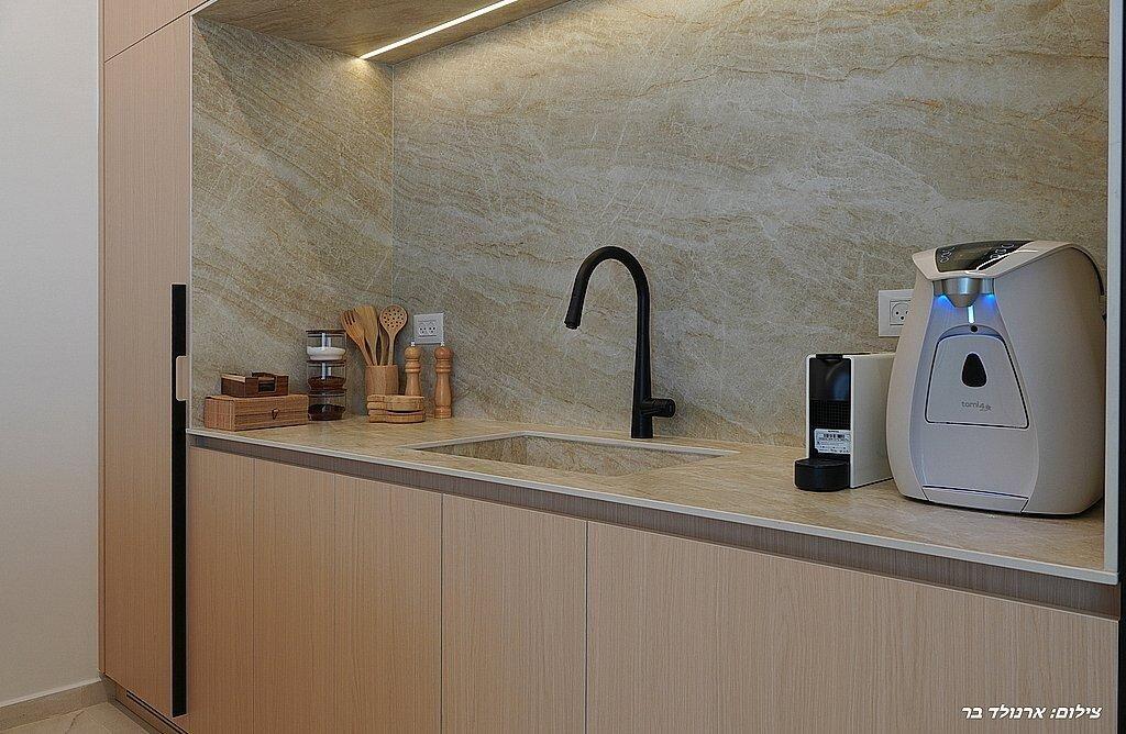 המטבח המלא מצויד בכל הדרוש: תמי 4, מכונת אספרסו, כלי הגשה, כיריים ופינת קפה עשירה.