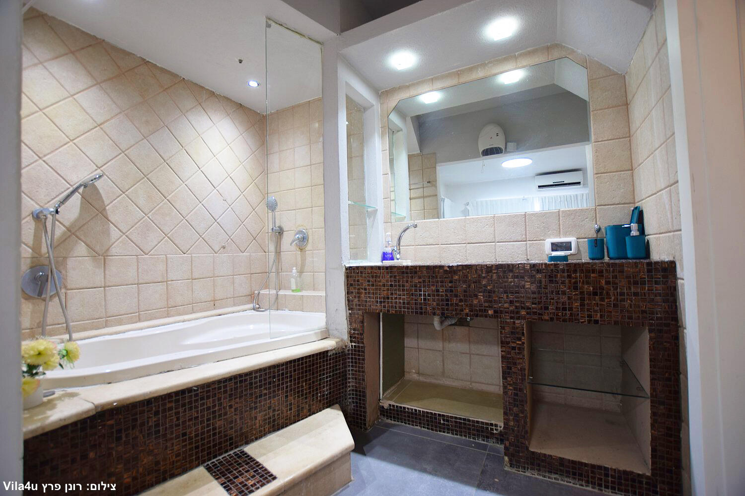 הוילה המדהימה הזו מכילה כ-7 חדרי שינה מפנקים מאובזרים ומרווחים, חצר גדולה עם בריכת שחיה מפנקת וצלולה (מחוממת בחורף), ג'קוזי ספא ל-6 אנשים ולאקסטרה שדרוג גם סאונה מפנקת, ריהוט גן איכותי ופינת מנגל, סלון מרווח ומטבח מאובזר!