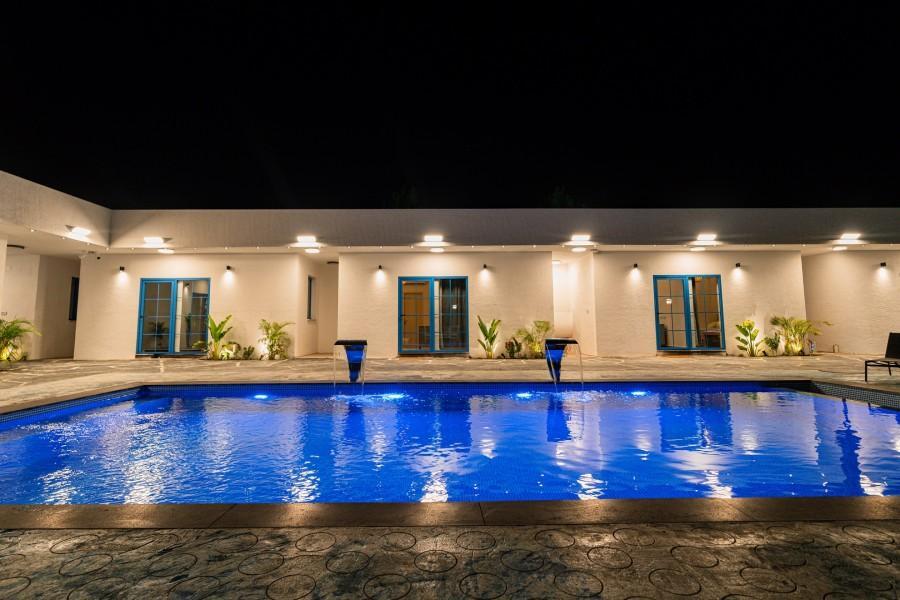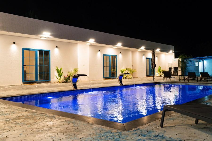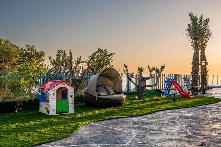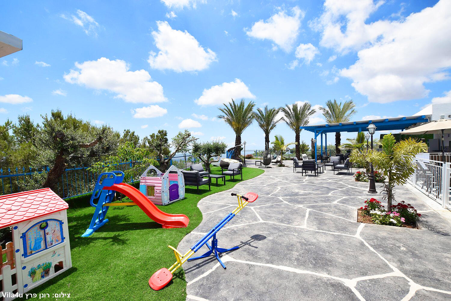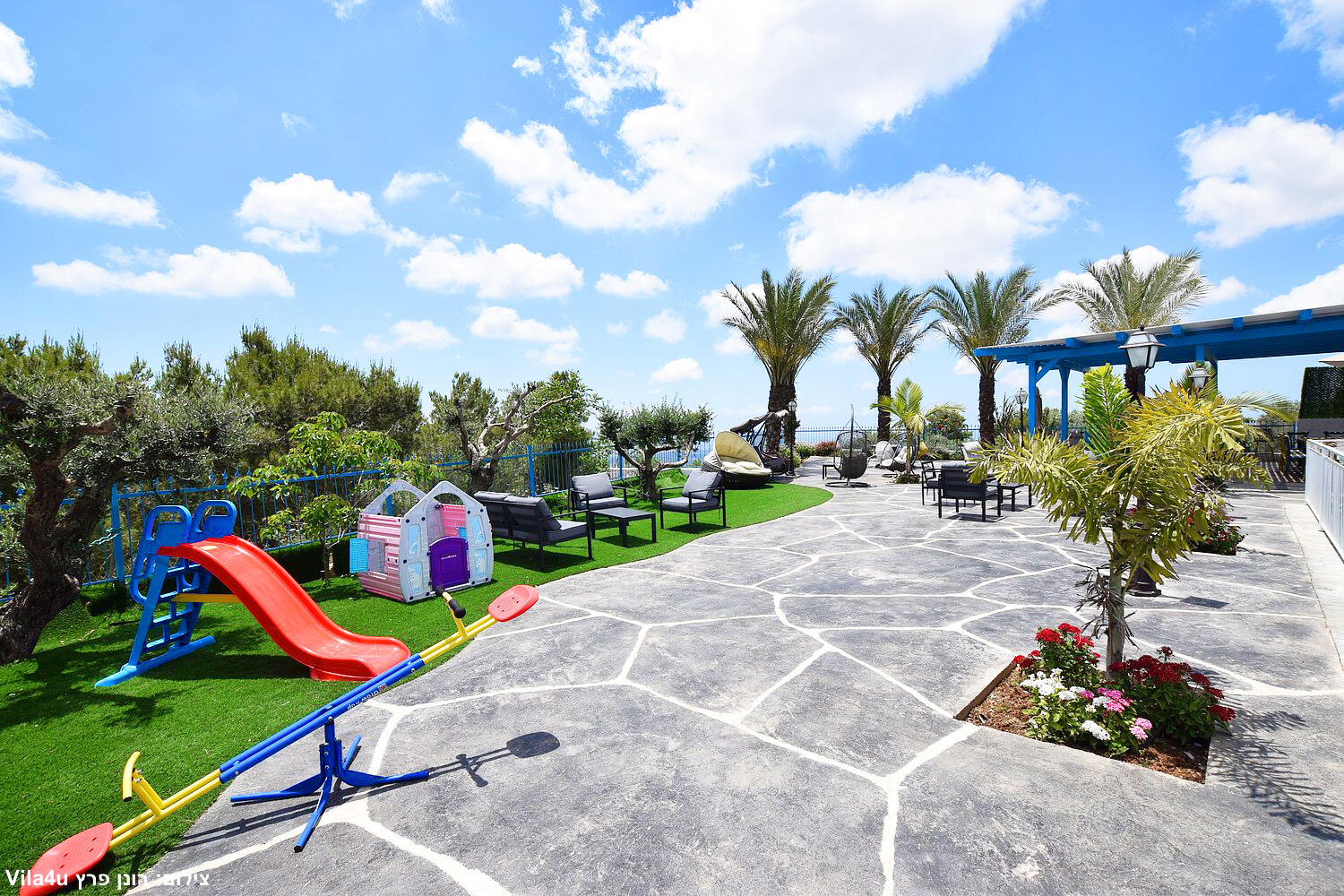 הוילה גדולה עם 12 חדרי שינה ו12 חדרי רחצה ובעלת חצר ענקית ומטופחת החל מבריכת שחיה גדולה מחוממת ומקורה בעונת החורף ועם 2 מפלי מים, כדורסל וטרמפולינה לילדים, מגלשות ונדנדות, מרחבי ישיבה מרווחים