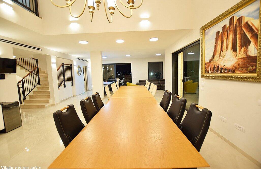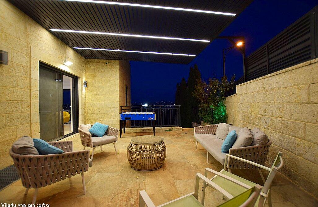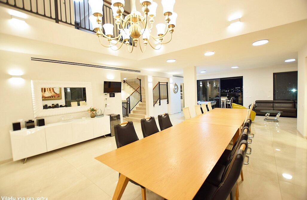 וילה נווה שמואל אינדיגו: מרחב אירוח יוקרתי, 4 מפלסים שלמים של חוויה בהר שמואל. ברוכים הבאים למקום המושלם לחופשה פרטית ברמה הגבוהה ביותר מול נוף מטריף להרי ירושלים! הוילה העצומה משתרעת על פני 350 מ"ר ומציעה 12 חדרי אירוח מפוארים היכולים לארח בנוחות עד 40 אורחים. זהו המקום האידיאלי למשפחות, קבוצות ואירועי שבתות חתן. בפנים מחכים לכם סלון ענק, 2 מטבחים מאובזרים וחדר אוכל המתאים לעד 40 סועדים. המתחם החיצוני הפרטי והמפנק כולל ג'קוזי ספא, בריכה, מרפסות עם נוף מרהיב ומשחקי שולחן שיבטיחו בילוי מושלם לכולם. התקשרו עכשיו לשריין את התאריך
