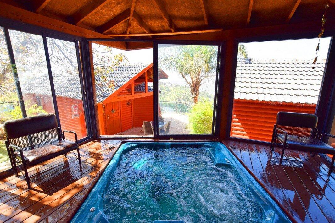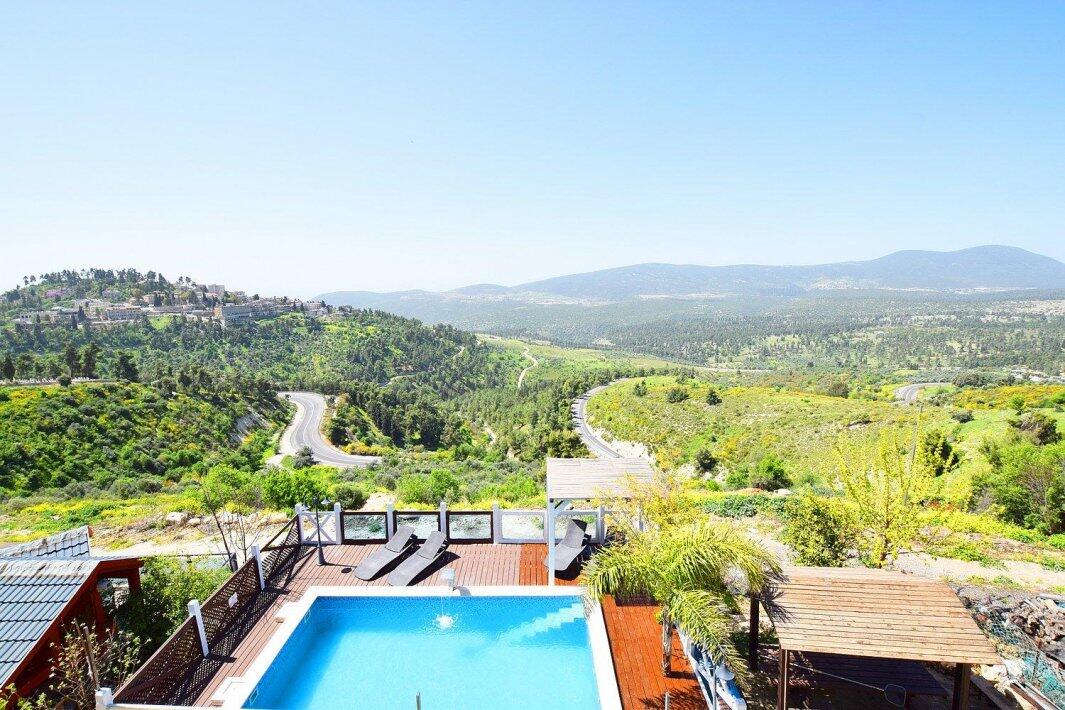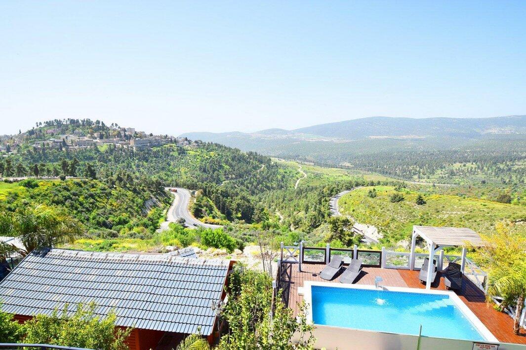 בקתות נוף אורנים - 3 בקתות מאובזרות הצופות לנוף מדהים ועוצר נשימה של הגליל, הבקתות בנויות מעץ מפנקות ומאובזרות בכל מה שצריך לחופשה מושלמת, מתאים למשפחות וזוגות עם חצר משותפת הכוללת בריכת שחייה הצופה לנוף, ג'קוזי ספא חיצוני ומקורה, ריהוט גן ותאורת לילה.