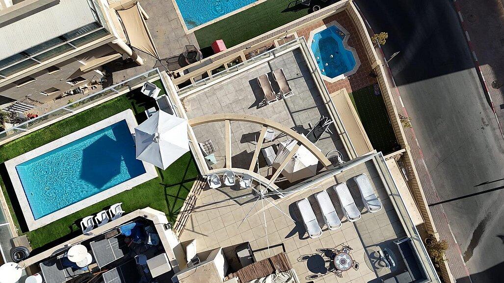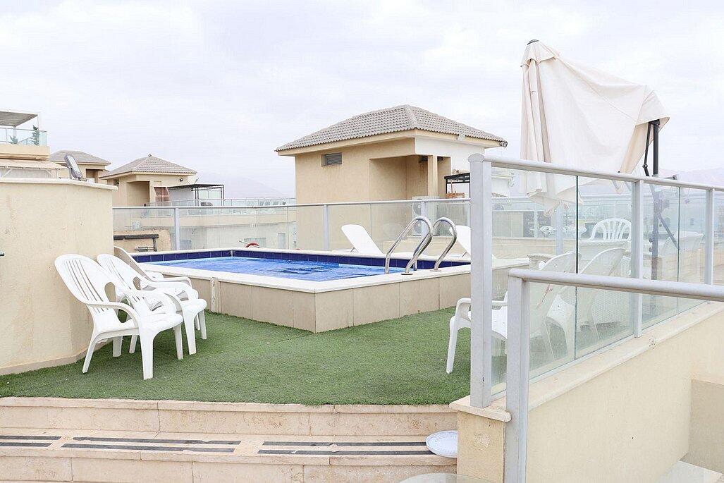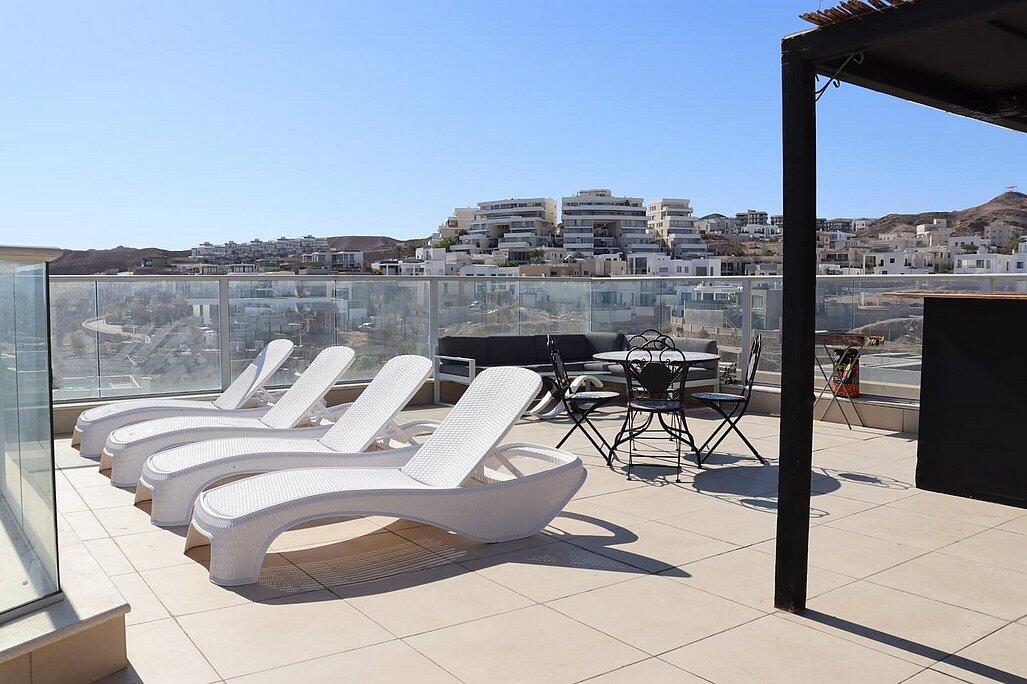 לא צריך לחפש יותר רחוק – פנטהאוז פרדייז באילת מציע לכם את כל מה שצריך כדי לחוות חופשה ברמה גבוהה. המקום כולל 4 חדרי שינה מרווחים, כאשר כל אחד מהם מציע מיטה זוגית נוחה, מסך טלוויזיה, מיזוג אוויר ואחסון נוח. בכניסתכם לפנטהאוז תמצאו סלון רחב עם מערכת ישיבה מסודרת ומטבח מאובזר בכל טוב. עבור מי שרוצה להימצא במרכז כל הפעילויות, הפנטהאוז ממוקם במקום אסטרטגי – קרוב לאטרקציות, מסעדות, חנויות ואזורי בילוי. בחוץ תחכה לכם בריכת שחייה מחוממת ומגוון פינות ישיבה, שיזוף ומנגל, כך שתהיו מרוצים כל רגע.