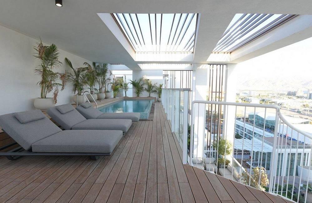 פנטהאוז AH אילת הוא המקום המושלם לחופשה יוקרתית עם נוף עוצר נשימה של הים וההרים. הפנטהאוז כולל 5 חדרי שינה מרווחים עם חדרי רחצה פרטיים, ומציע חווית נופש יוקרתית שמתאימה למשפחות וזוגות. המקום מעוצב בסגנון מודרני עם חדרים מרווחים ומפנקים, ובנוי על 2 מפלסים. מהפנטהאוז תוכלו ליהנות ממתחם בריכה מפואר, הממוקם בצורה שתאפשר לכם ליהנות מהנוף המהמם של העיר אילת והים. זהו המקום המושלם לנופש ברמה הגבוהה ביותר.