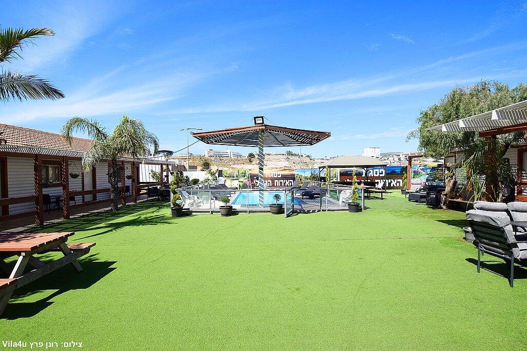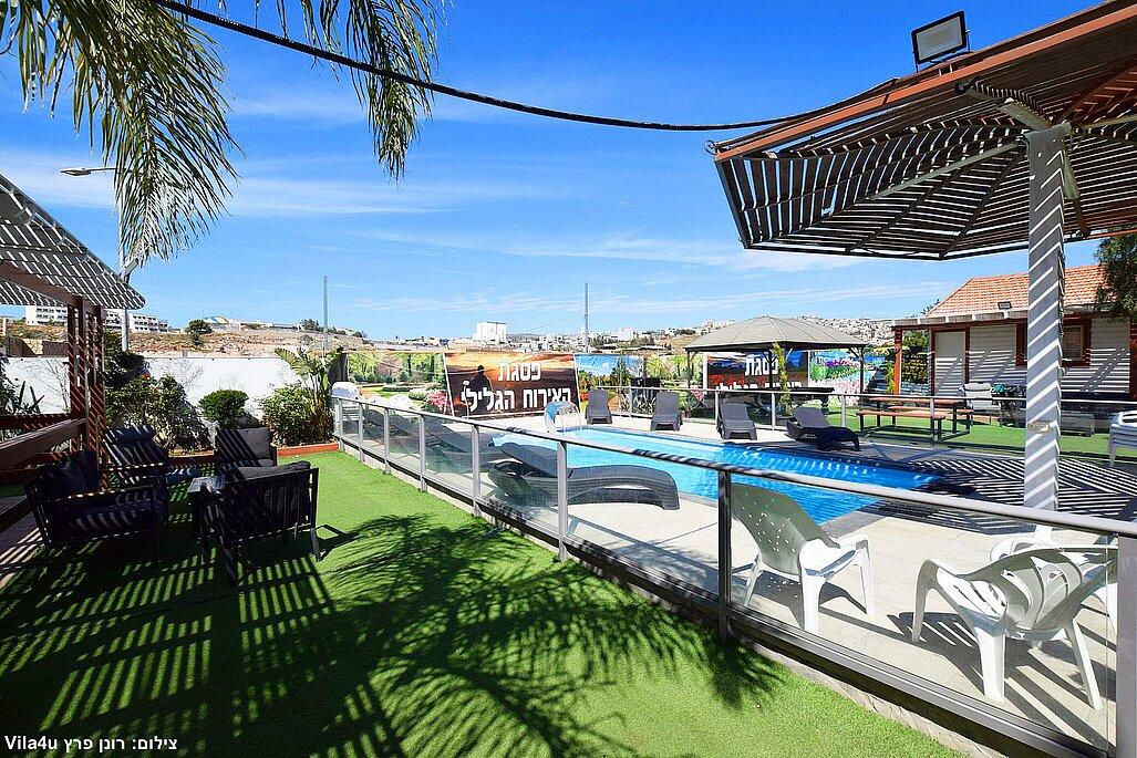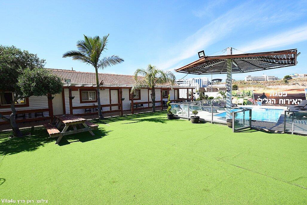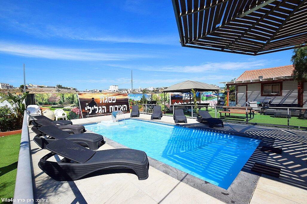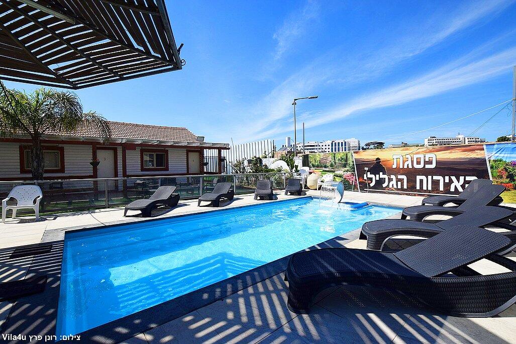 בוילה 7 סוויטות כאשר כל אחת עם 2 חדרי שינה, מתחם חיצוני משגע עם בריכת שחייה מחוממת בעונת החורף, משחקים לילדים, פינות שיזוף, פינת מנגל וכל מה שאתם צריכים לחופשה מפנקת בצפון.