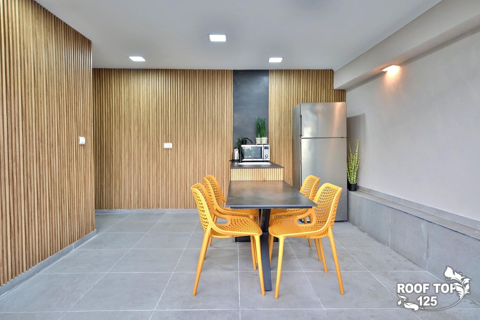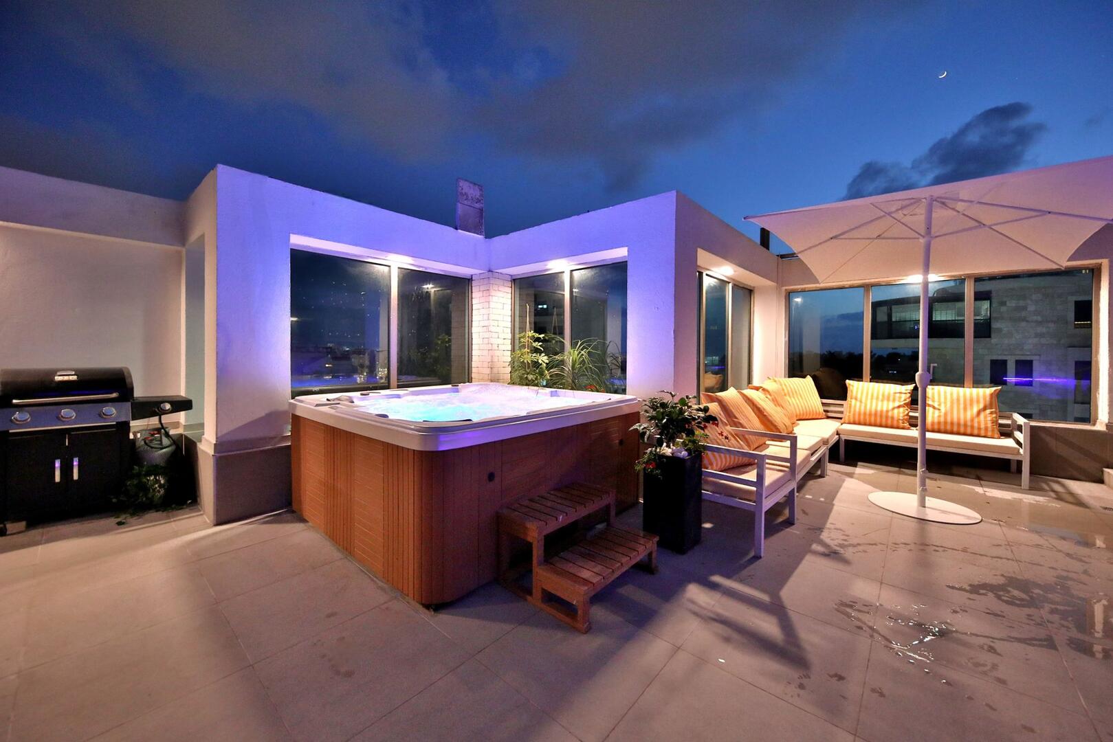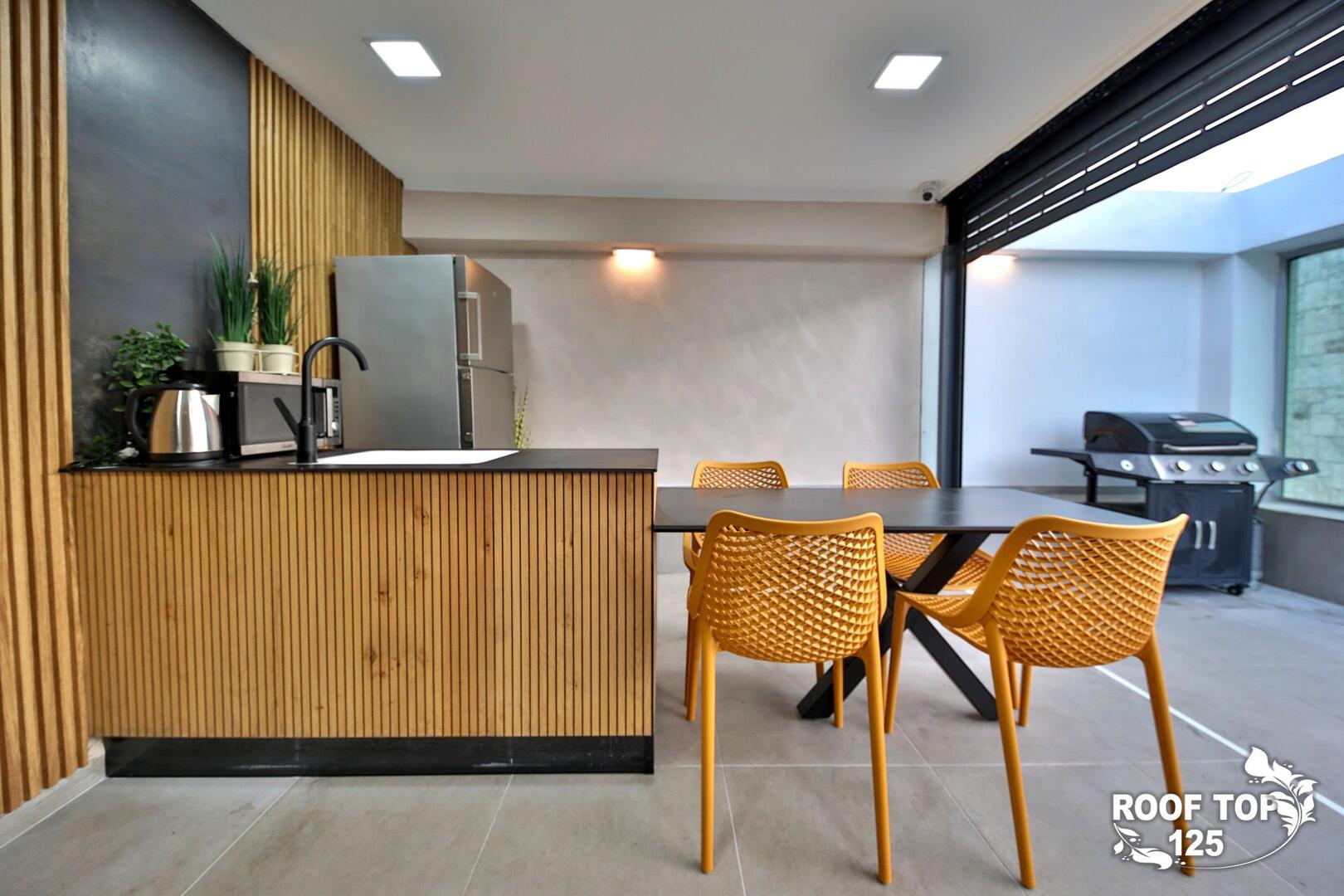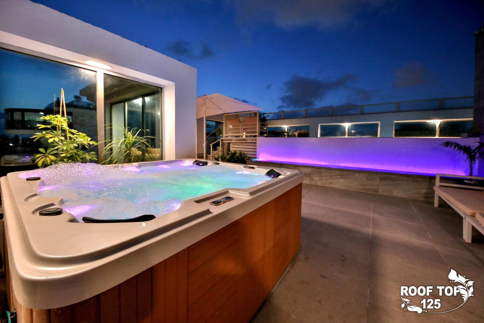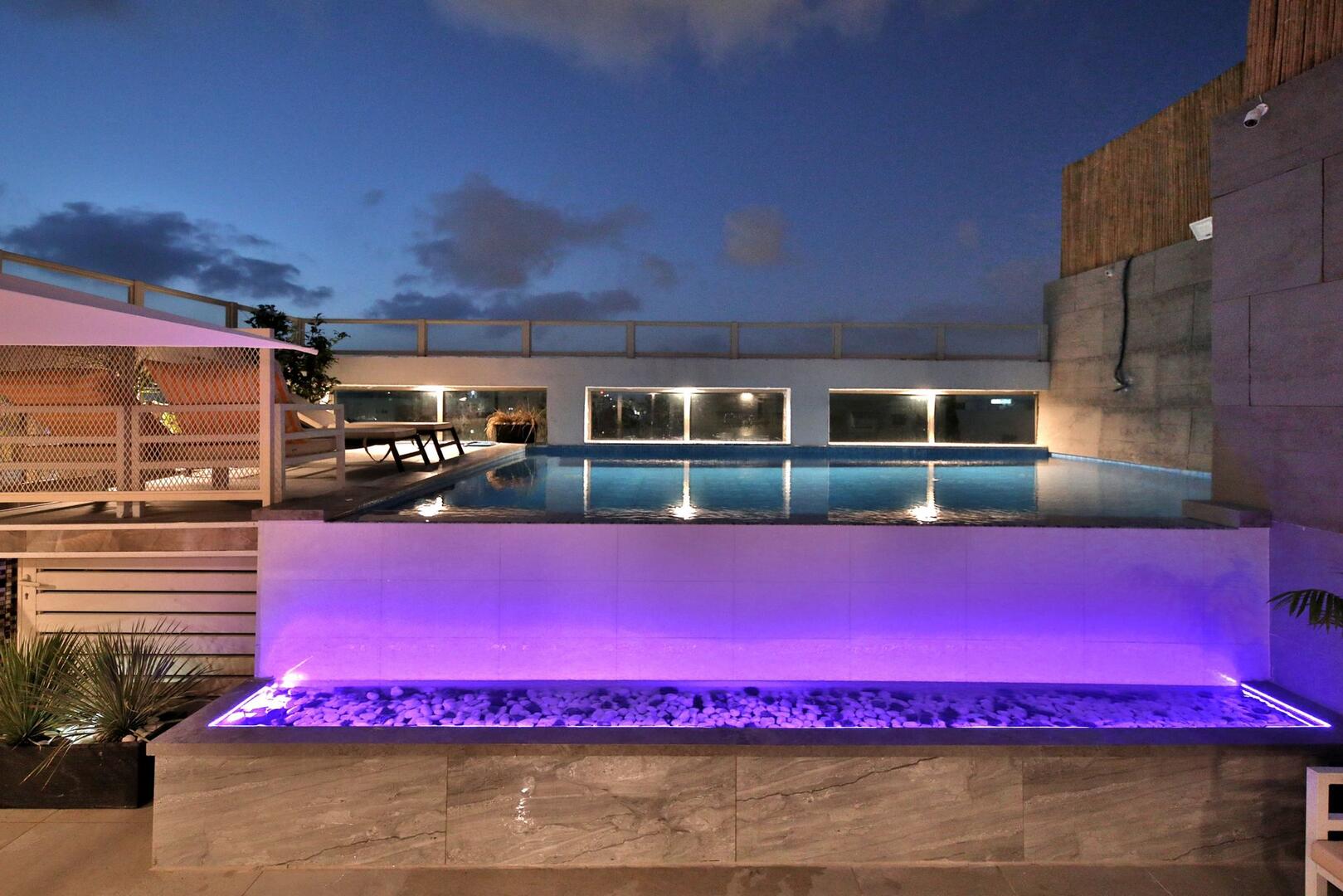 רוף טופ 125 מציע חווית נופש בלתי רגילה במיקום מושלם בנהריה, עם גישה ישירה לנוף עוצר נשימה של העיר. המתחם נמצא בגג בניין ומציע מקום נוח ומפנק הכולל סלון מרווח ומעוצב עם פינת אוכל, מטבח מאובזר קומפלט, ובחוץ – בריכת אינפיניטי מדהימה, ג'קוזי ספא לוהט ומגוון פינות ישיבה נוחות. עם חמישה חדרי שינה, המתחם מציע אירוח לזוגות, משפחות וקבוצות, ומאפשר לינה עד 16 אורחים. אם אתם מחפשים מקום להתארח בו במסגרת אירוע סולידי, רוף טופ 125 מציע את המענה המושלם. תוכלו גם להזמין שף פרטי, מגשי סושי ולקבל שירות צמוד 24 שעות ביממה, כך שתקבלו את כל מה שאתם צריכים לנפוש בצורה הטובה ביותר.