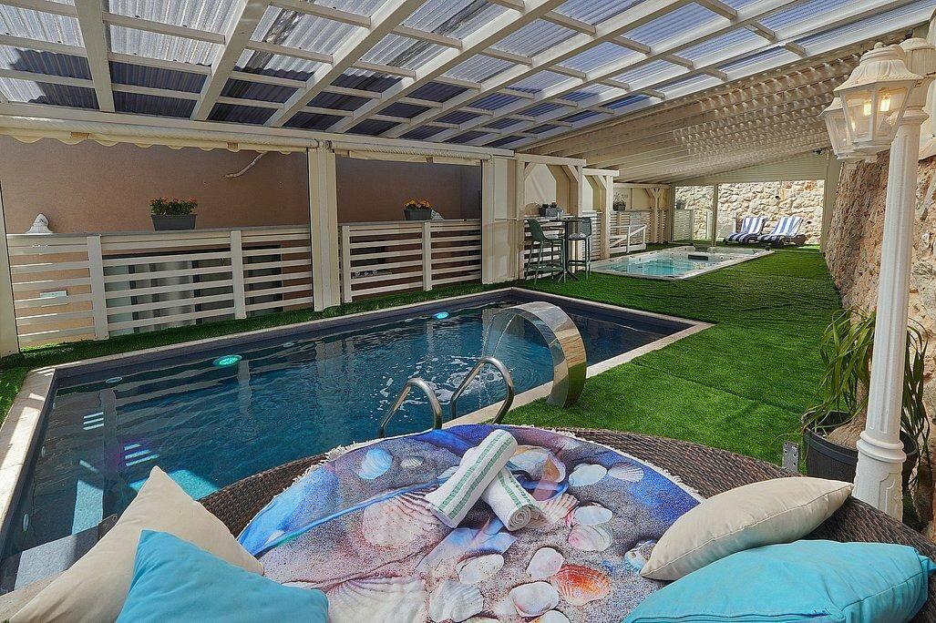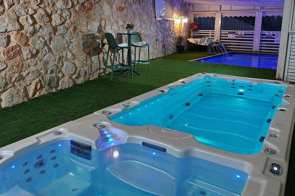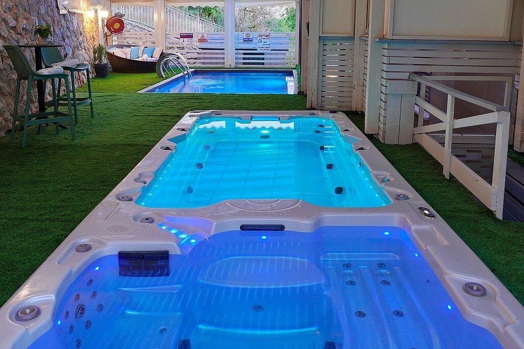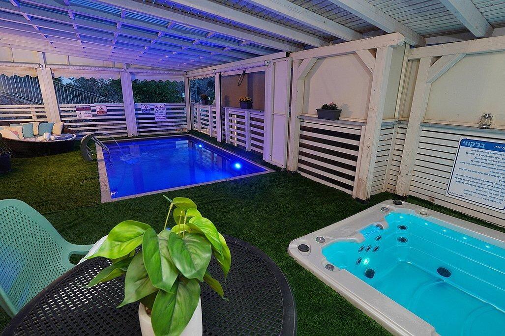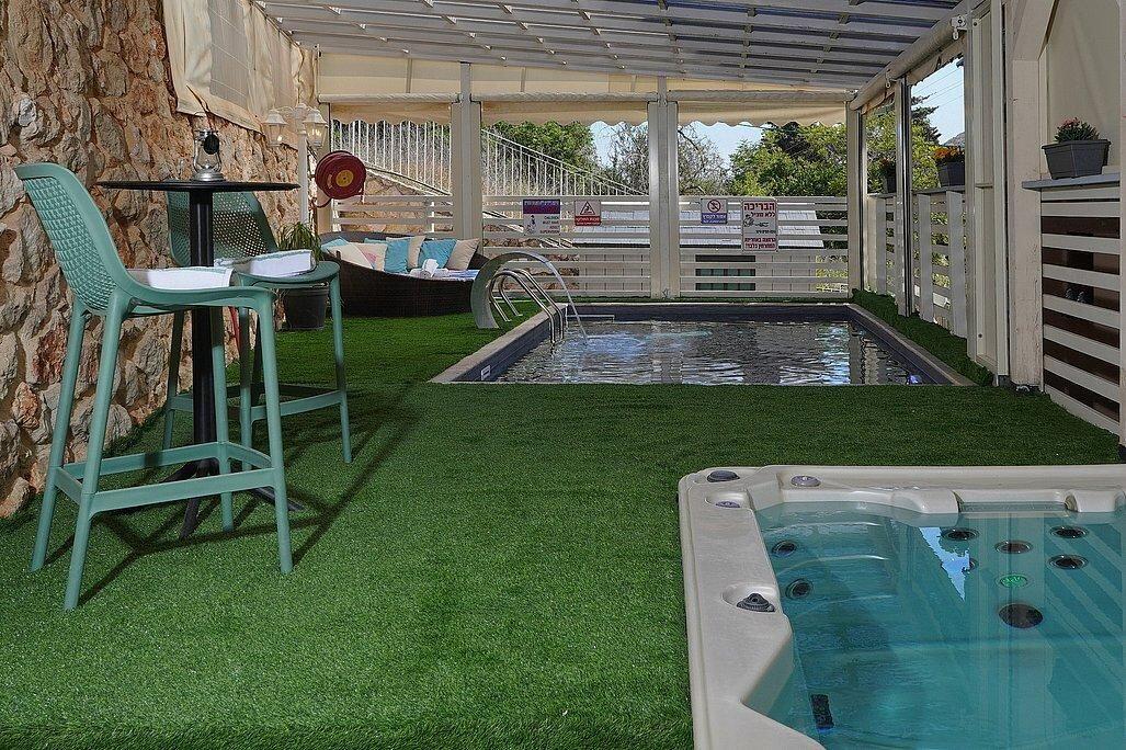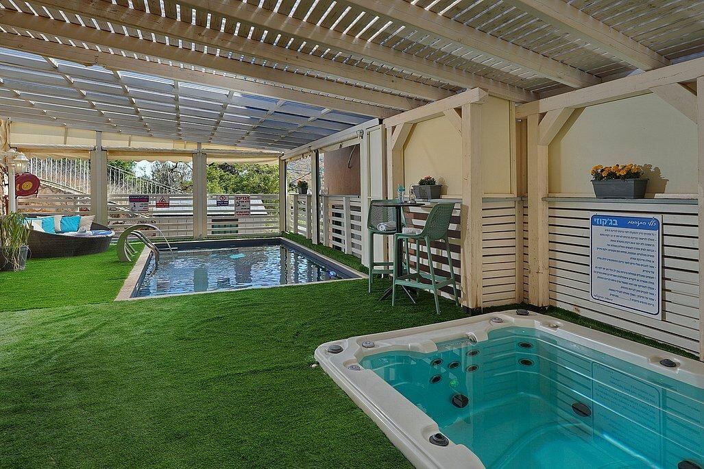 בחצר תיהנו מבריכת שחייה, בריכת זרמים מחוממת, ג'קוזי ספא ופינות ישיבה.