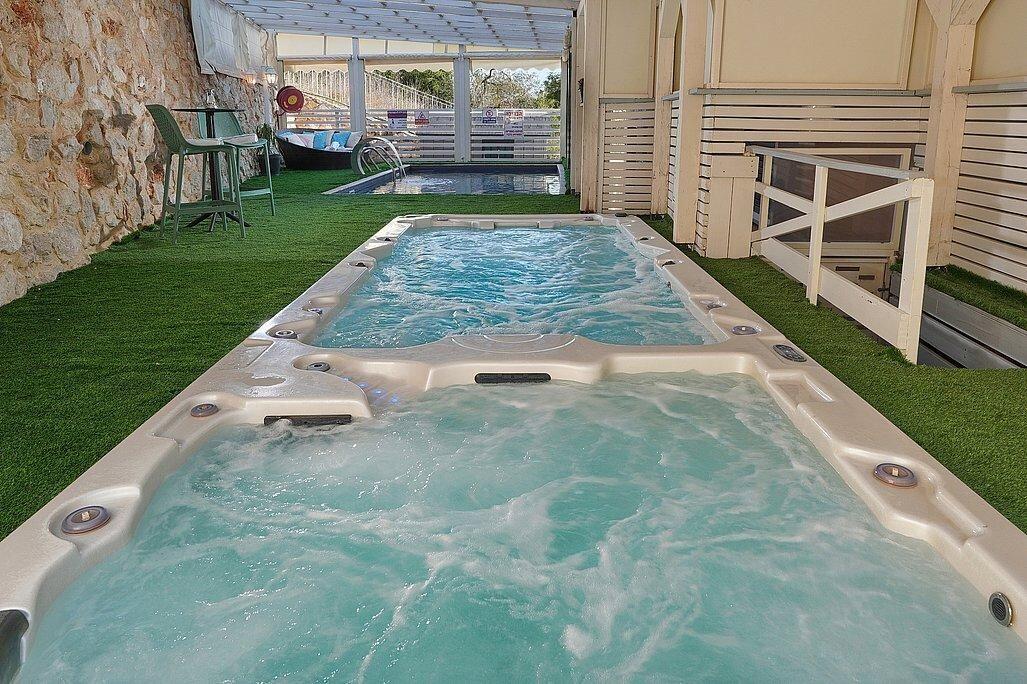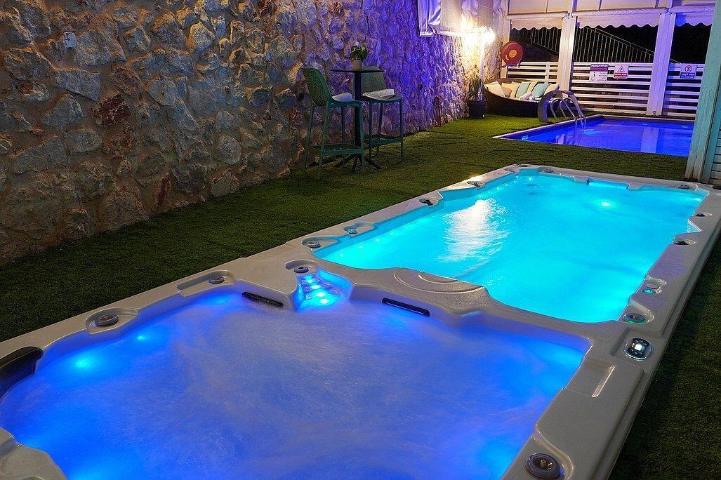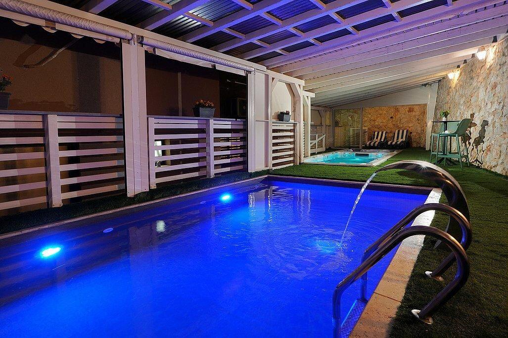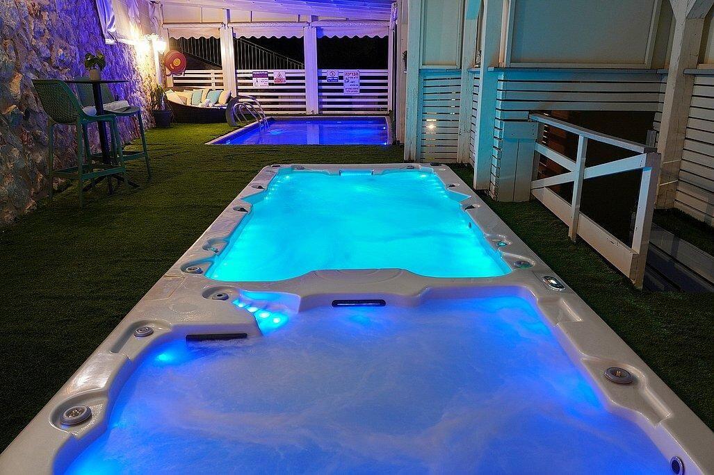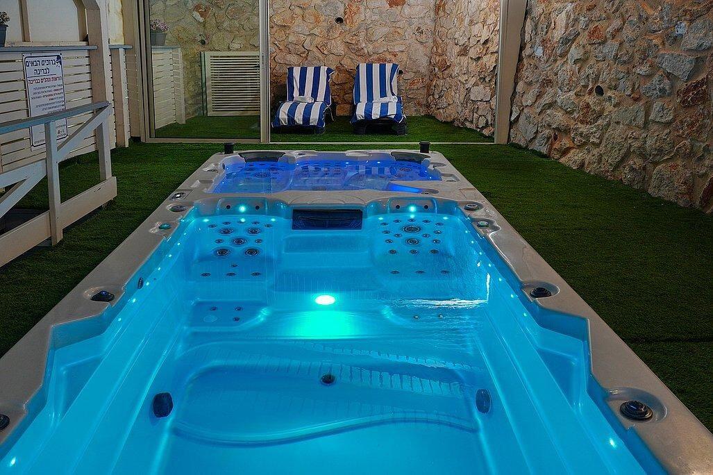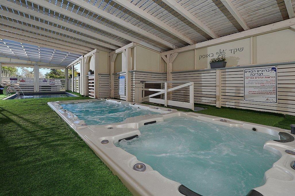 בחצר תיהנו מבריכת שחייה, בריכת זרמים מחוממת, ג'קוזי ספא ופינות ישיבה.