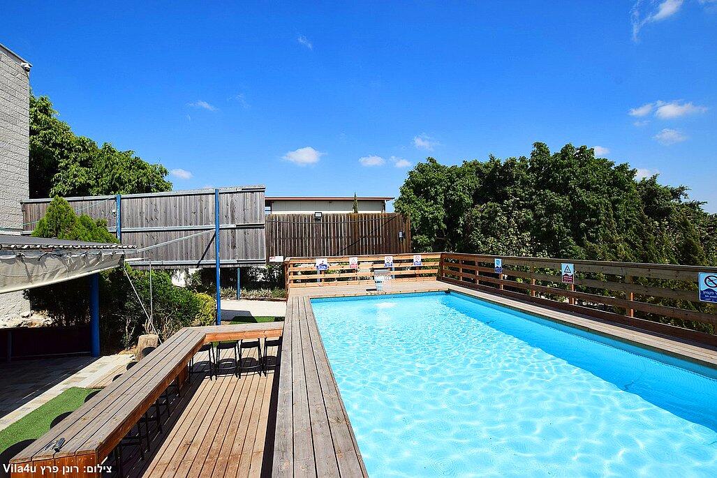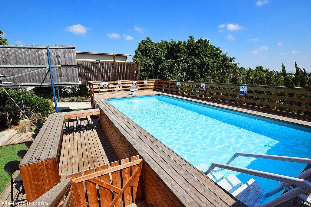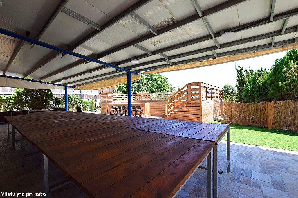 בבוקר בריכה צלולה מוקפת דקלים, בצהריים חדר משחקים עם סנוקר וכדורגל, ובערב על האש מקצועי.