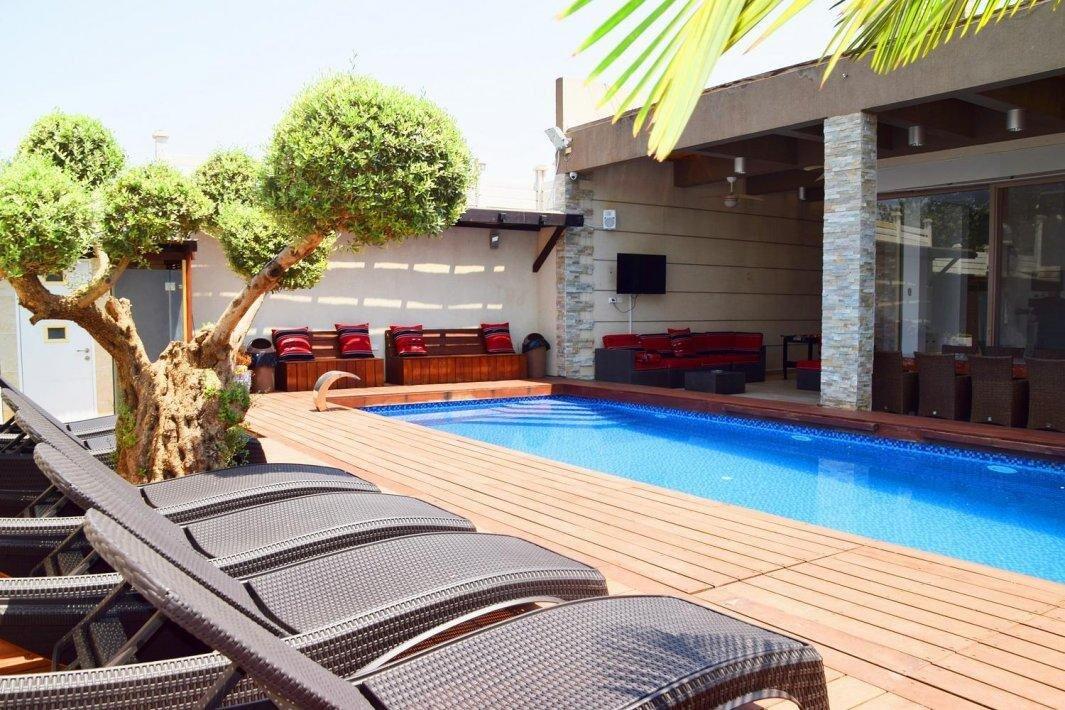 וילה גדולה ומפנקת עם 8 חדרי שינה ממוקמת בנתניה, בריכה מחוממת ומקורה, ג'קוזי ספא, סאונה, שולחנות משחק ועוד מגוון רחב של אטרקציות לחופשה בלא פחות מרמת 5 כוכבים