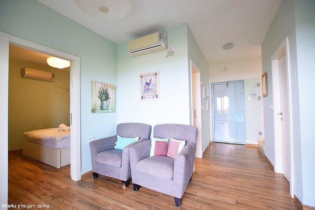 - ניתן לשכור חלק מהוילה לזוגות ומשפחות קטנות ולקבל 2 סוויטות עם כניסה פרטית ויציאה לחצר.