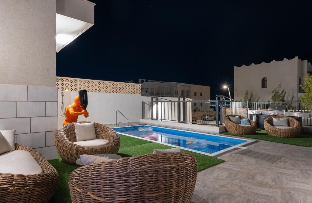 בוילה יחכו לכם 5 חדרי שינה מעוצבים ומאובזרים, מתוכם 2 סוויטות הורים אחת בקומה העליונה, ואחת בקומה התחתונה כאשר לה קיימת כניסה נפרדת, מתחם פנימי מעוצב ומפנק המכיל סלון מרווח ומסך טלויזיה חכם, מטבח מאובזר הכולל אי, מתחם חיצוני מרהיב הכולל בריכת שחיה מחוממת וג'קוזי, מגוון פינות ישיבה ורביצה ועוד!