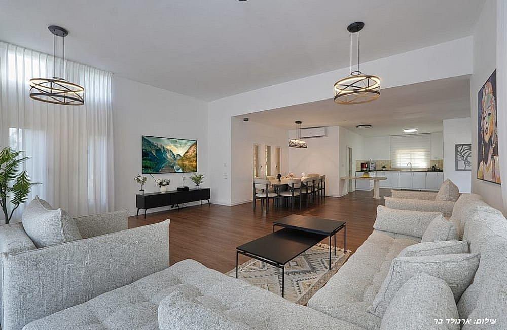 וילה עם 7 חדרי שינה, 6 חדרי רחצה, סלון רחב ומסך צפייה גדול לאירוח מושלם.