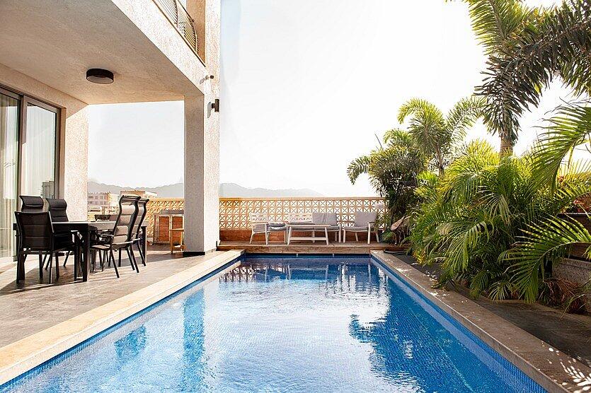 וילה רויאל הום אילת מציעה חופשה יוקרתית עם כל הפינוקים. הסוויטה המפנקת עם ג'קוזי, הבריכה פרטית בחצר, והסלון הנעים – כל אלו הופכים את המקום לאידיאלי לנפוש בו באילת. המיקום האסטרטגי של הוילה מאפשר לכם ליהנות גם מהאטרקציות של אילת וגם מהמקום השקט והפרטי להירגע בו.