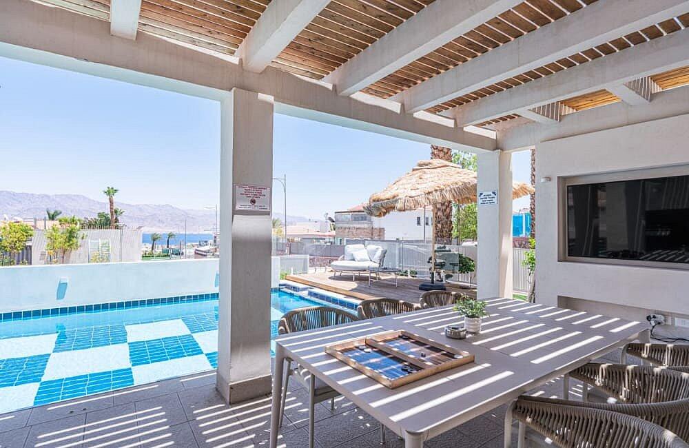 הסטנדרט הגבוה בעיר: וילה קטלינה באילת מציעה חוויית אירוח יוקרתית יוצאת דופן למשפחות ולקבוצות עם נוף מדהים אל ההרים. המתחם כולל בריכה פרטית ענקית בגודל 12×5 מטר, סלון מודרני מרווח 2 חדרי שינה ו 4 סוויטות מפוארות ( סך הכל 6 חדרים ). המקום מושלם לימי גיבוש ואירועים שקטים. צרו קשר והבטיחו לעצמכם נופש איכותי בסטנדרט הגבוה ביותר.