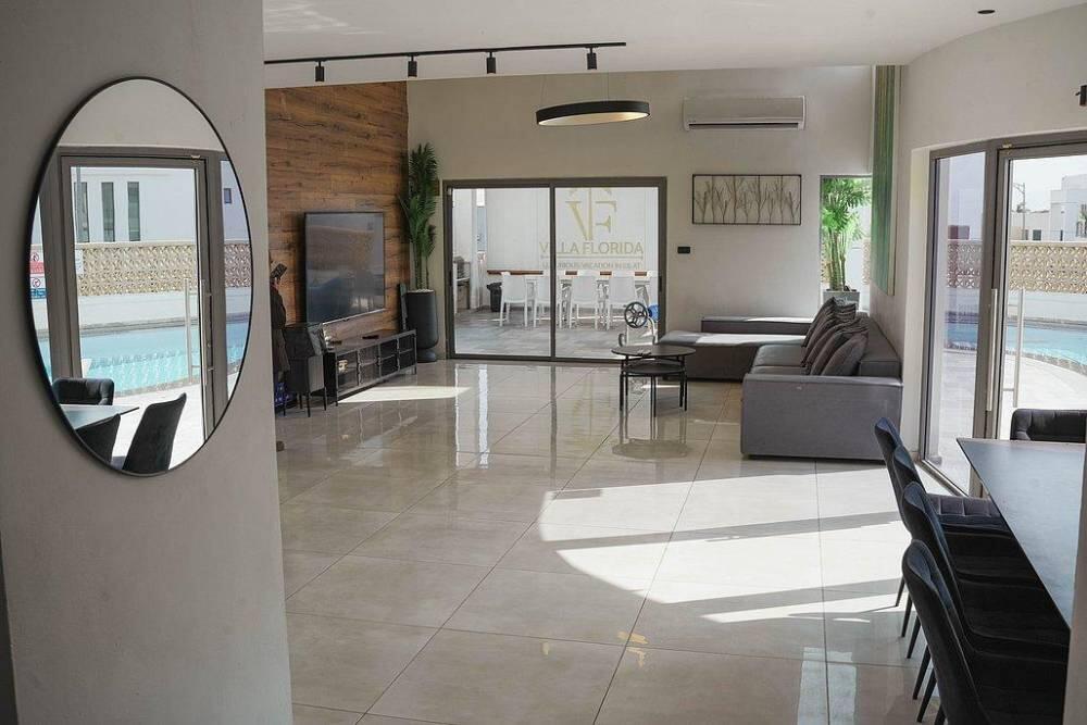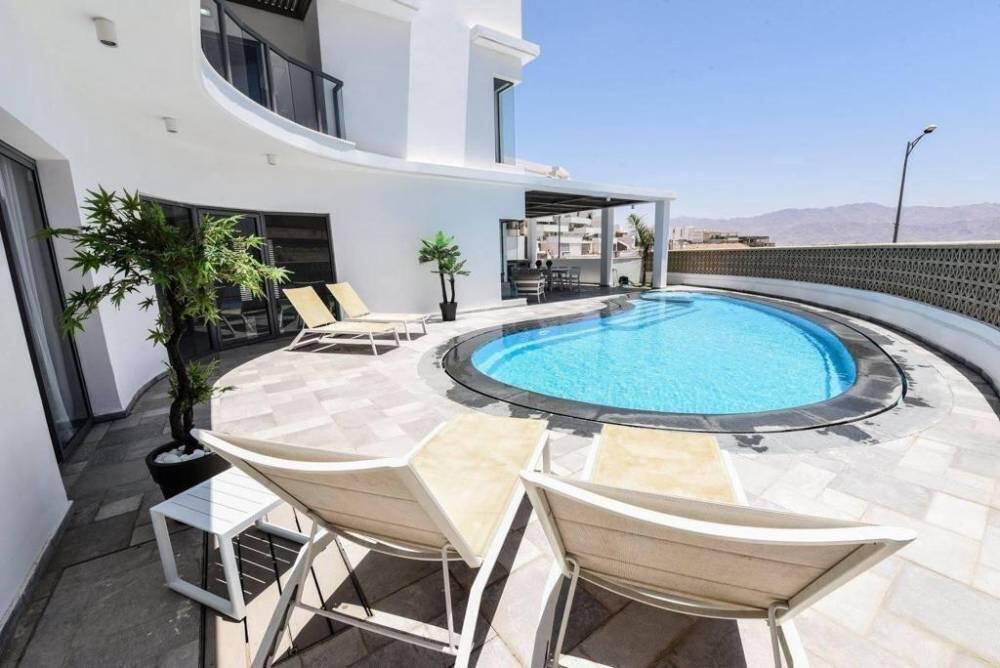 הכירו את וילה פלורידה אילת- וילה לנופש במיקום מדהים עם נוף חלקי לים, וילה גדולה במימדיה המכילה 3 קומות ומונה 7 חדרי שינה סלון ענק עם יציאה אל המרפסת. פינת אוכל רחבת ידיים, מטבח מאובזר קומפלט ומתחם חיצוני קסום עם בריכת שחייה מוארת בלילה, ועוד קומה תחתונה עם בריכה מחוממת, מדשאות ופינות ישיבה ושיזוף מפוארות וזו רק ההתחלה!