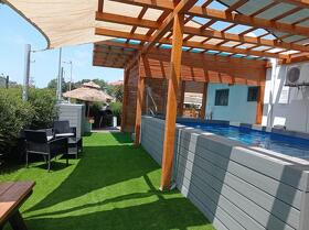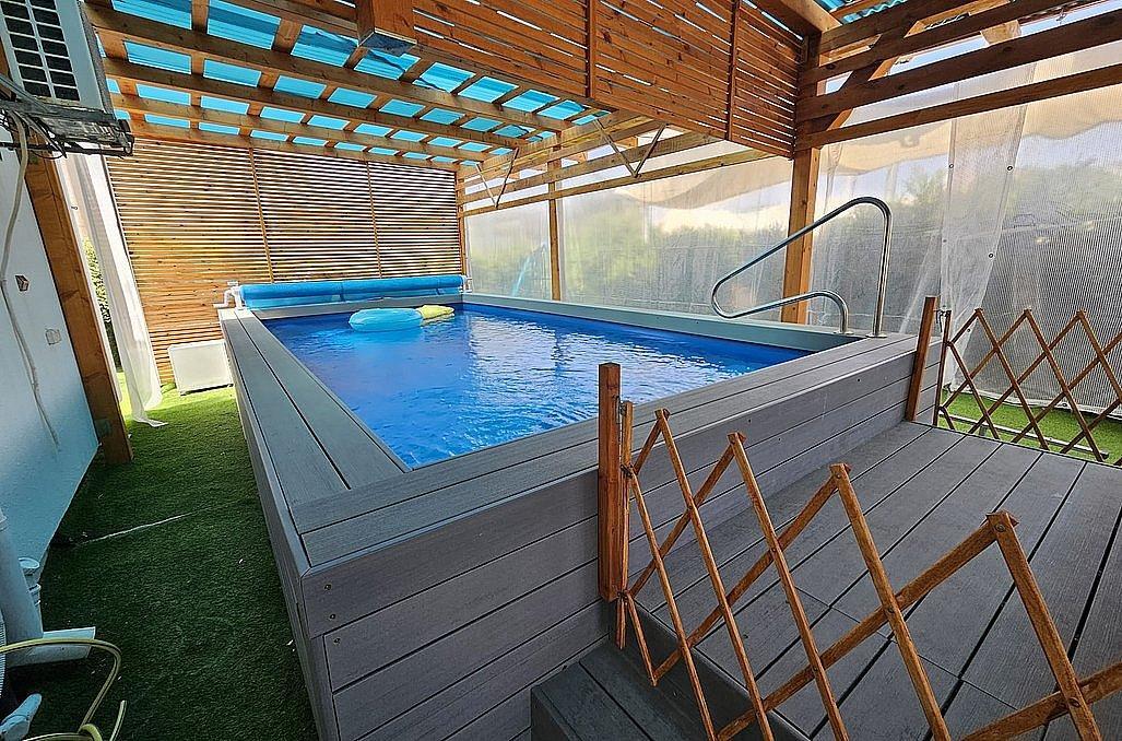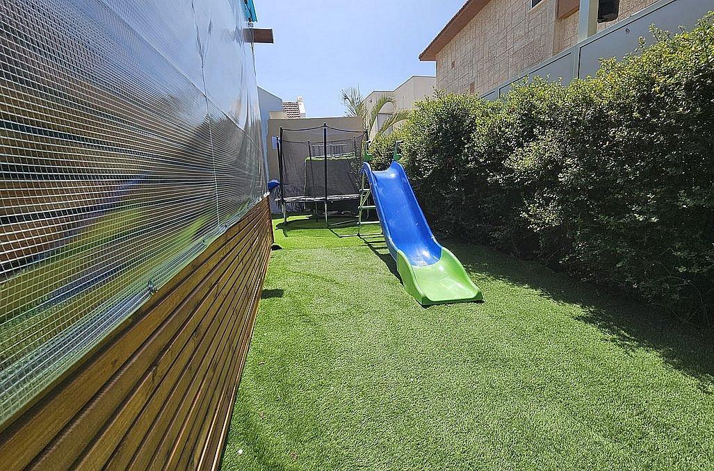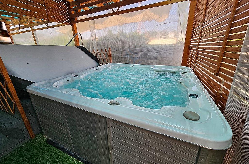 לוילה מתחם חיצוני ענק עם מדשאות, נדנדות לילדים, ג'קוזי מחומם ומפנק ואפילו בריכה ענקית וצלולה.