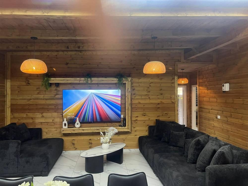 טלוויזיה עם נטפליקס, פינת אוכל ל־12, חיבור לכבלים ויוטיוב.