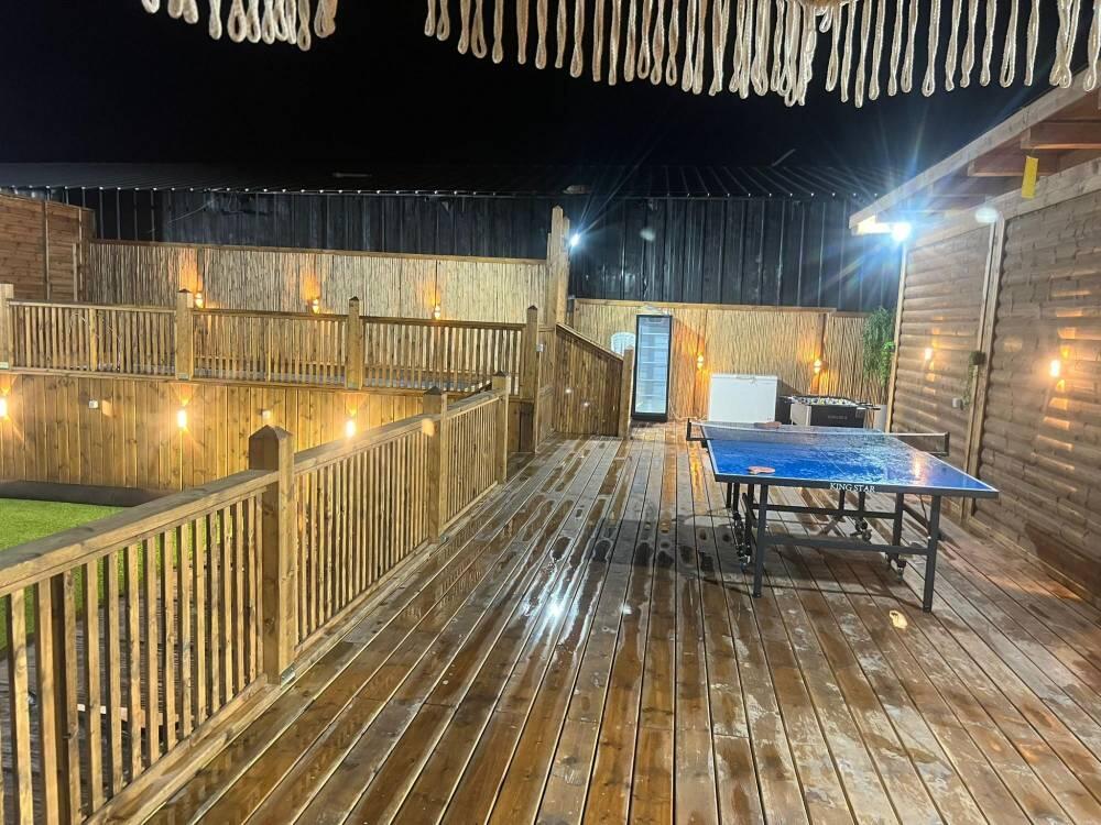 בריכה צלולה, משחקי שולחן, פינת BBQ וריהוט גן איכותי.