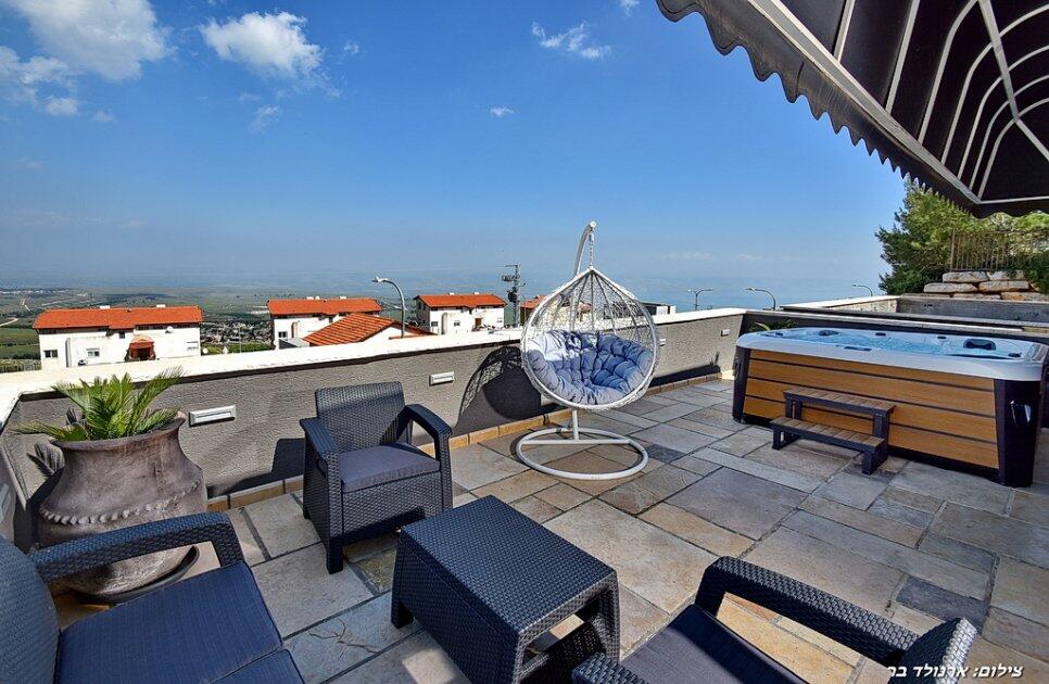 וילה רילקס - מתחם נופש מודרני עם בריכה וסאונה פרטית: וילה רילקס מציעה חוויית אירוח מודרנית ואיכותית בנוף כנרת. הוילה המעוצבת כוללת 7 חדרי שינה עם מיטה זוגית ומסך, 4 חדרי רחצה וסלון עם טלוויזיה 65 אינץ'. להשלמת הפינוק, תמצאו בתוך הוילה חדר כושר עם מכשירים וסאונה יבשה. החצר החיצונית מספקת את כל הנדרש לחופשה מושלמת: בריכה צלולה עם מפל וספסל רביצה (מחוממת בחורף), ג'קוזי ספא, פינת ברביקיו עם מטבחון ומשחקי שולחן מקצועיים. המיקום האידיאלי מאפשר גישה נוחה למסלולי טיול וקרבה לכנרת. בואו ליהנות מחופשת רוגע ופינוק מלאה - הזמינו מקום עכשיו!