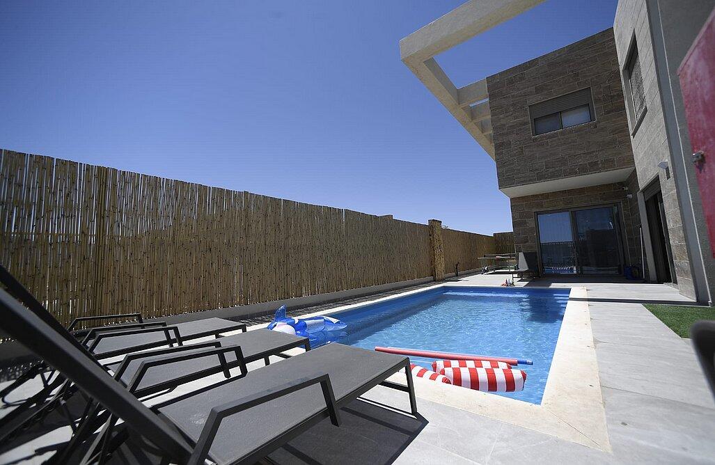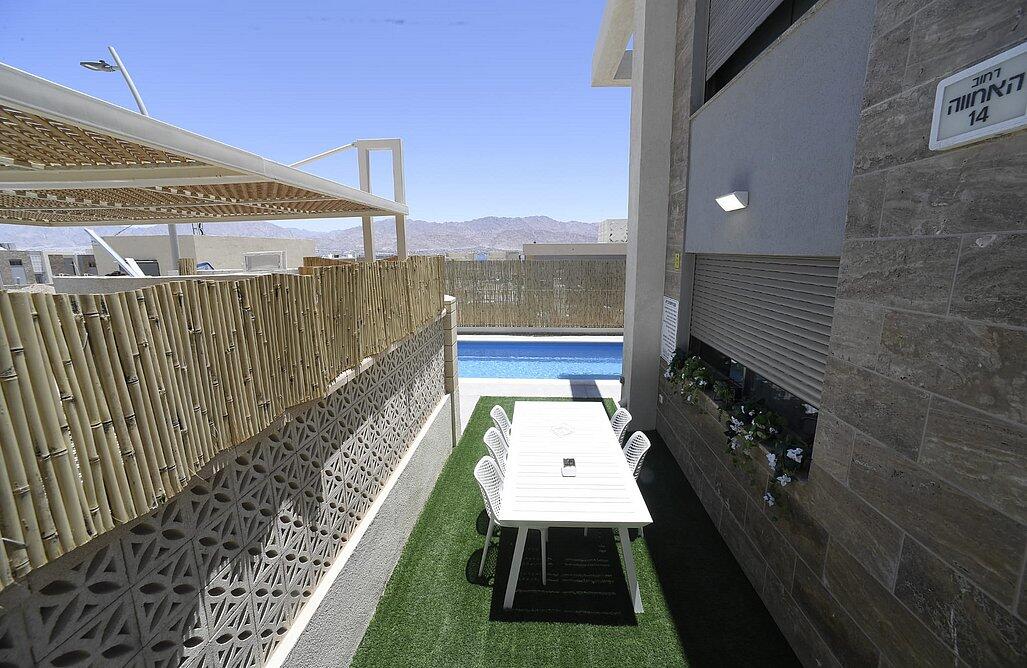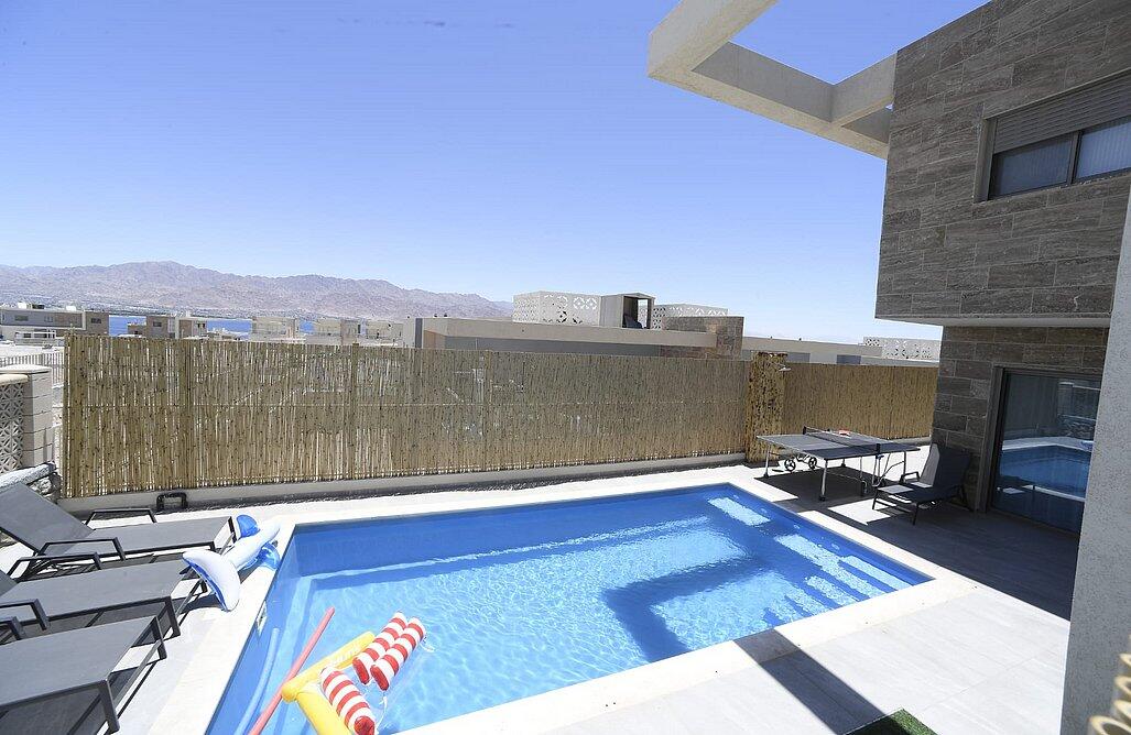 וילה שירת הים באילת – המקום המושלם לחופשה שלכם. 5 חדרי שינה מעוצבים, סלון מרווח ומטבח מאובזר. מתחם חיצוני עם בריכת שחייה, שולחן טניס ופינות ישיבה. מתאים למשפחות, זוגות וקבוצות עד 15 איש. אירוח לנופש בלבד – לא מתאים לבני נוער