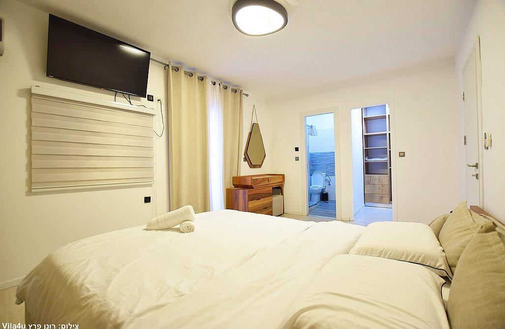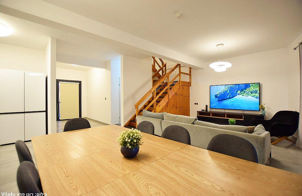 וילה בין הר לים – נופש יוקרתי במושבה מגדל בוילה עם 4 חדרי שינה מרווחים, סלון נעים ומטבח מאובזר, בחצר תיהנו בריכה מחוממת ומקורה, פינת BBQ ונוף מדהים לכנרת. הוילה מתאימה למשפחות וזוגות, עד 12 אורחים.