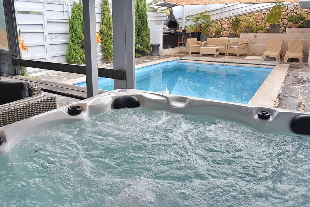 בחוץ תיהנו מבריכת שחייה גדולה, ג׳קוזי ספא מקורה, אזורי ישיבה מוצלים, מיטות שיזוף ועמדת ברביקיו מקצועית – כל מה שצריך לחופשה מושלמת.
