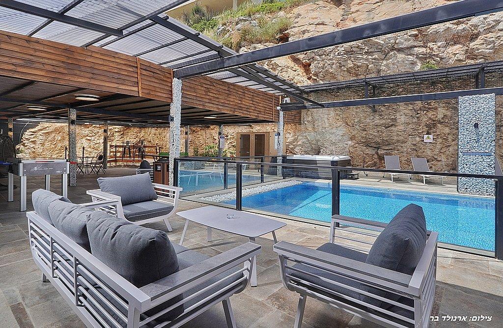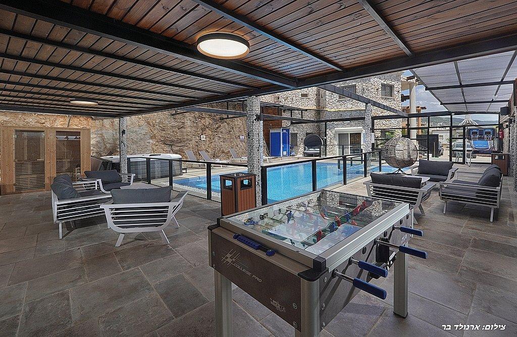 הוילה כוללת כ-4 חדרי שינה כאשר 3 מהם כוללים גם חדר ילדים, 3 סלונים ומטבח. בחצר המתחם תוכלו ליהנות משפע אטרקציות כמו: ג'קוזי ספא, בריכת שחייה גדולה עם מפל מטפטף מלמעלה, בריכה לפעוטות, מגוון משחקי שולחן, בריכת דגים לנוי ועוד..