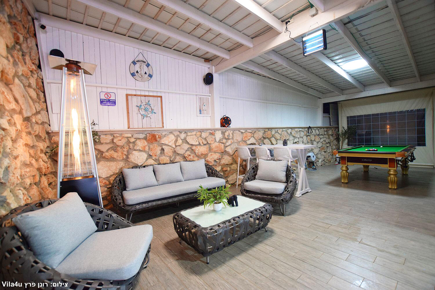 פינות ישיבה, מטבח חוץ, ופינג פונג להנאת הילדים.