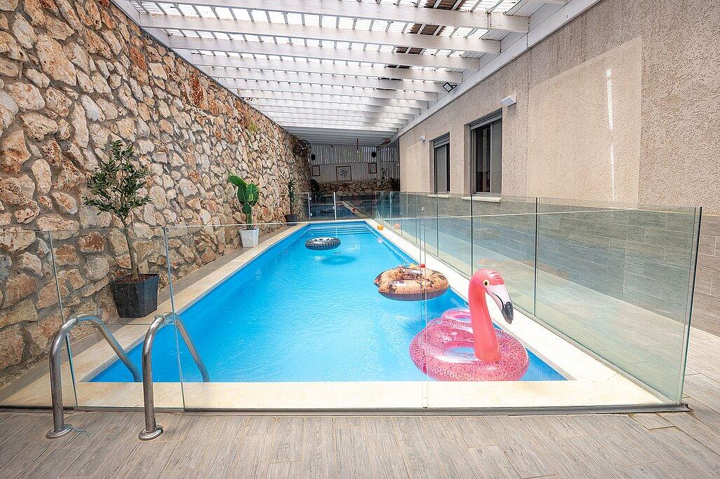 סלון גדול, 2 מטבחים מאובזרים, ובריכה מחוממת עם ג'קוזי.