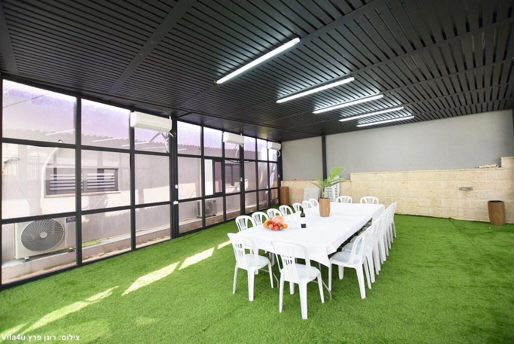 אחוזת נוף האלה שבמושב נווה מיכאל מציעה לכם 7 חדרים מפנקים, סלון מרווח ומטבח מאובזר. החצר הענקית של 1000 מ"ר כוללת בריכת שחייה מחוממת ומקורה בחורף, ג'קוזי ספא ענק, פינת ברביקיו ומשחקי שולחן. המקום מתאים לנופש משפחתי, קבוצות וימי גיבוש. תחוו חוויה בלתי נשכחת באווירה רגועה ונעימה. שימו לב – המתחם שומר שבת ואין להדליק מנגל בשבתות ובחג.