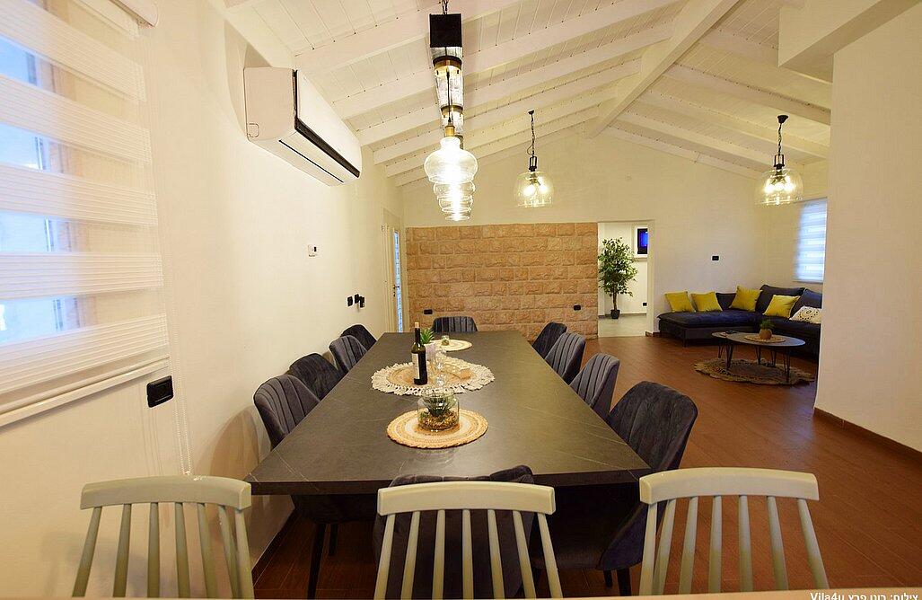 וילה ברבדוס, הממוקמת במושב גורן שבגליל המערבי, מציעה חווית נופש יוקרתית וייחודית. הוילה רחבה ומעוצבת להפליא, עם 5 חדרי שינה מפנקים שמספקים פרטיות ונוחות לאורחים. המטבח המאובזר במלואו אידיאלי להכנת ארוחות משפחתיות, והסלון המרווח הוא המקום המושלם לפשטות ונינוחות. במהלך כל השנה תוכלו להנות מבריכת שחייה מחוממת ומקורה עם מגלשה, כך שגם בחורף תוכלו לשחות וליהנות מהמים. לאחר יום פעילות, חווית רגיעה מחכה לכם בג'קוזי ספא מפנק. בנוסף, הוילה כוללת משחקי חצר כמו טניס שולחן, מדשאות מטופחות ופינות ישיבה חיצוניות, המהוות את המקום המושלם לנופש משפחתי, קבוצות חברים או כל מי שמעוניין בחופשה רגועה ומפנקת.