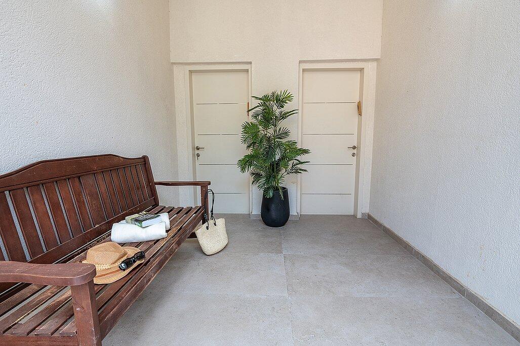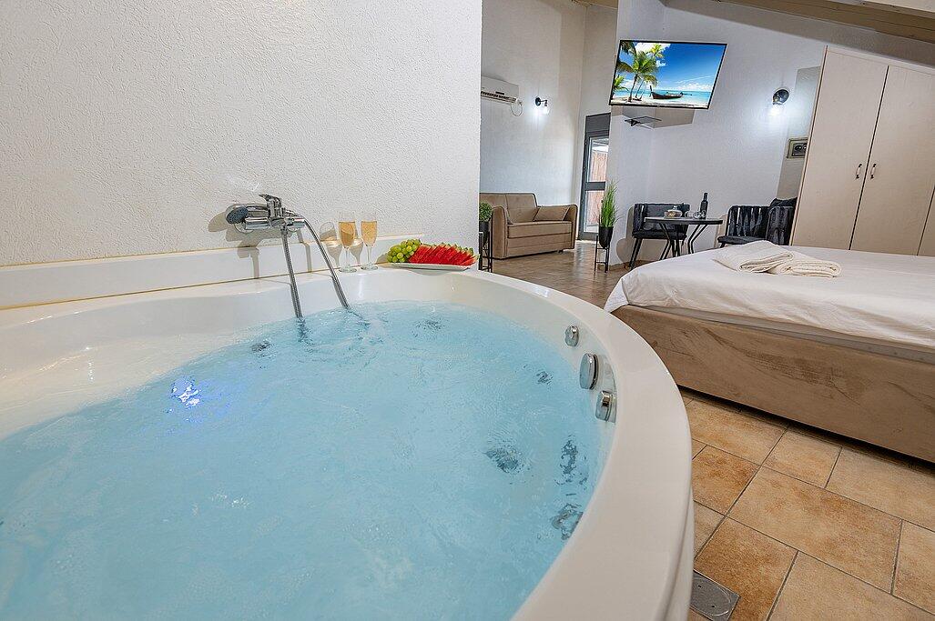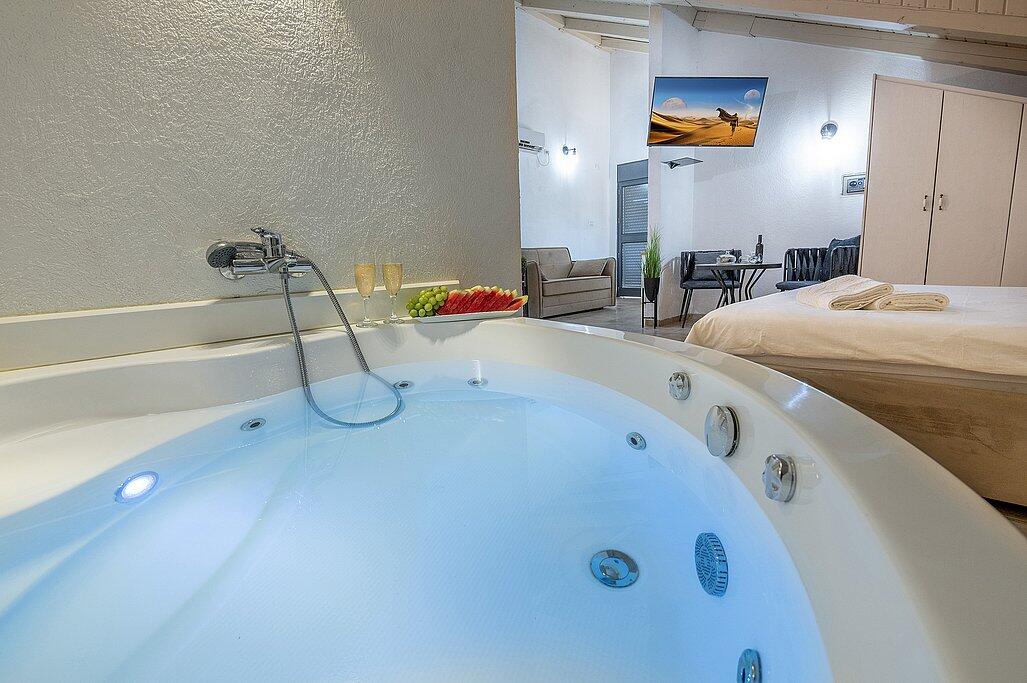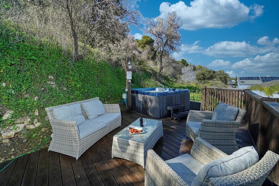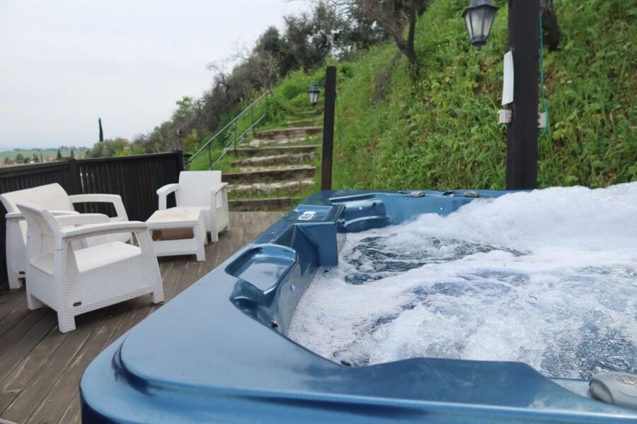 ישנה גם סאונה יבשה מרגיעה, ג'קוזי חיצוני משותף ובריכה עונתית מחוממת ומגודרת לבטיחות הילדים.