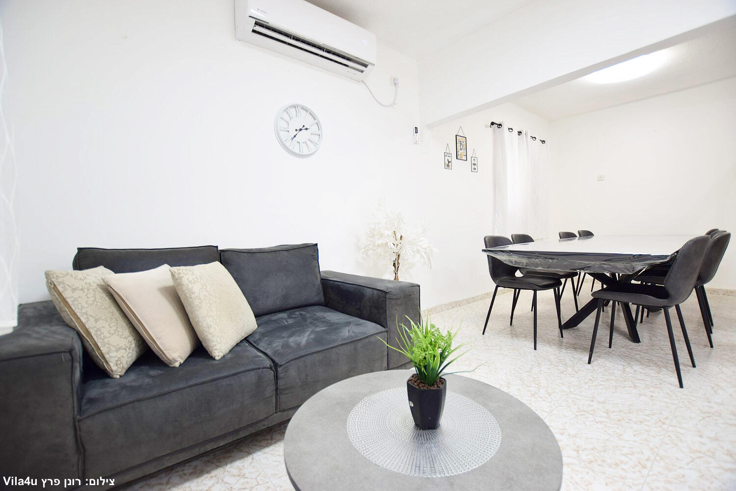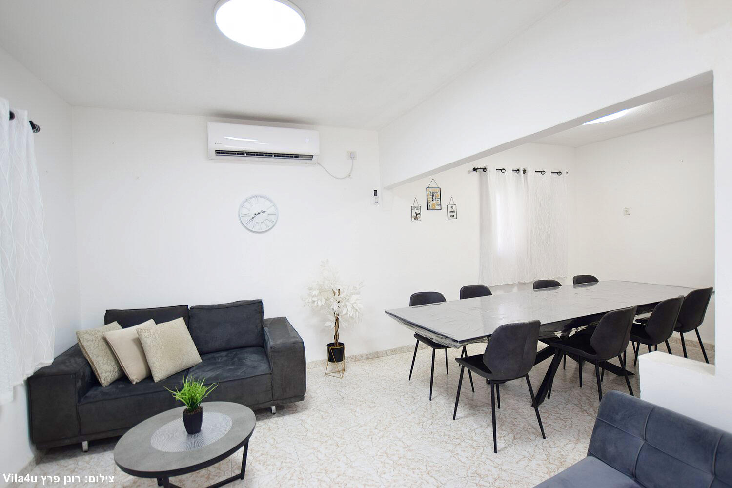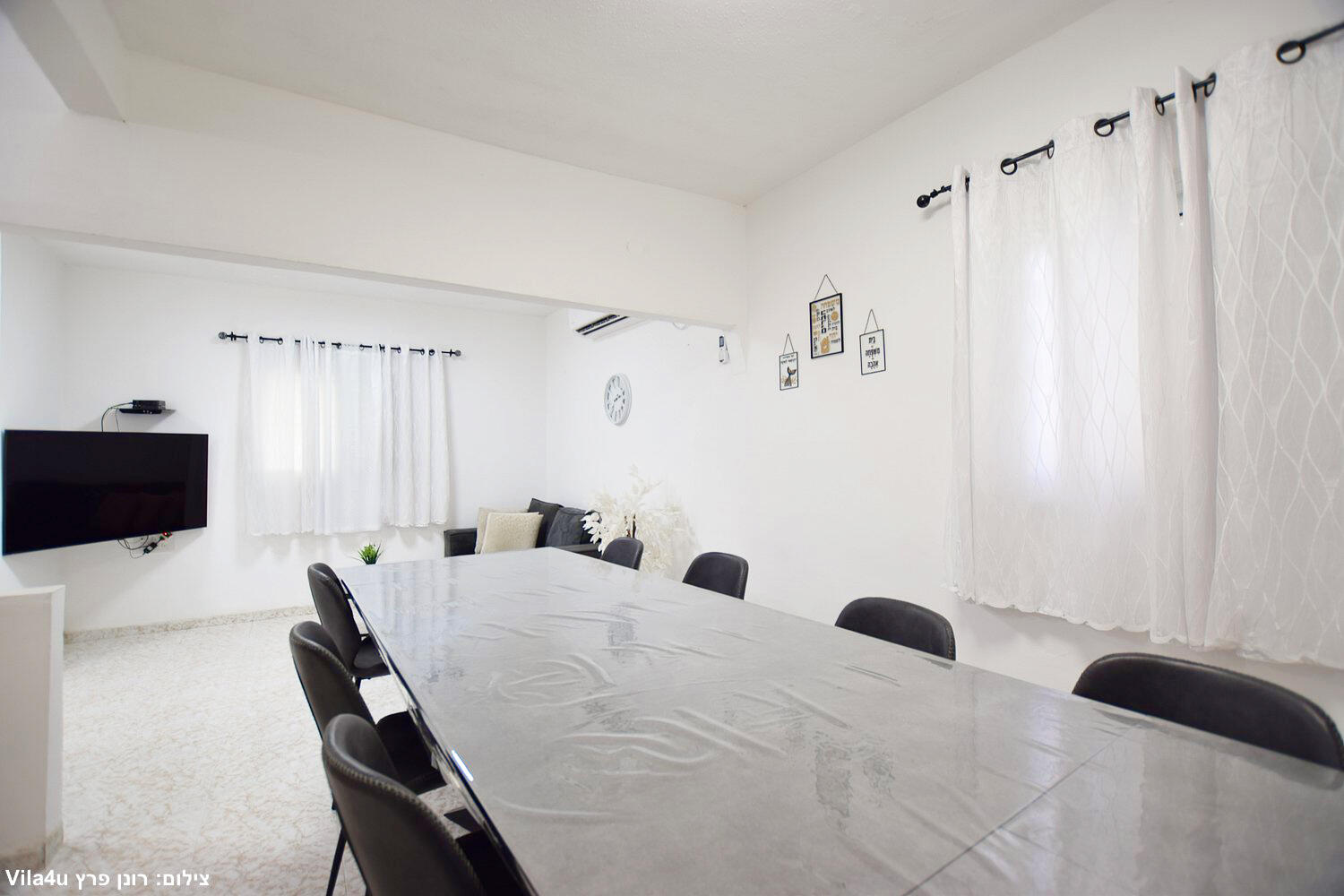 הסלון הגדול עם מסך LCD ופינת אוכל רחבה מושלם לארוחות משפחתיות.