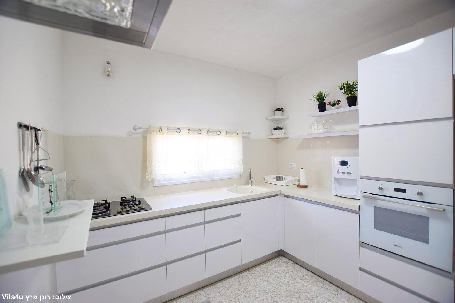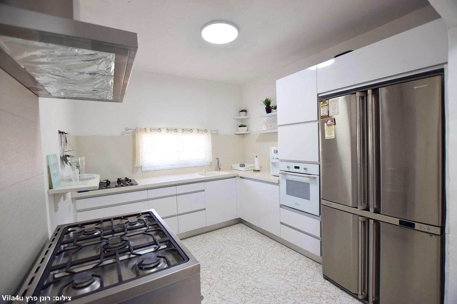 המטבח מאובזר בכל הציוד הדרוש - מותאם לשומרי שבת, עם פלטה, מיחם ומתקן מים.
