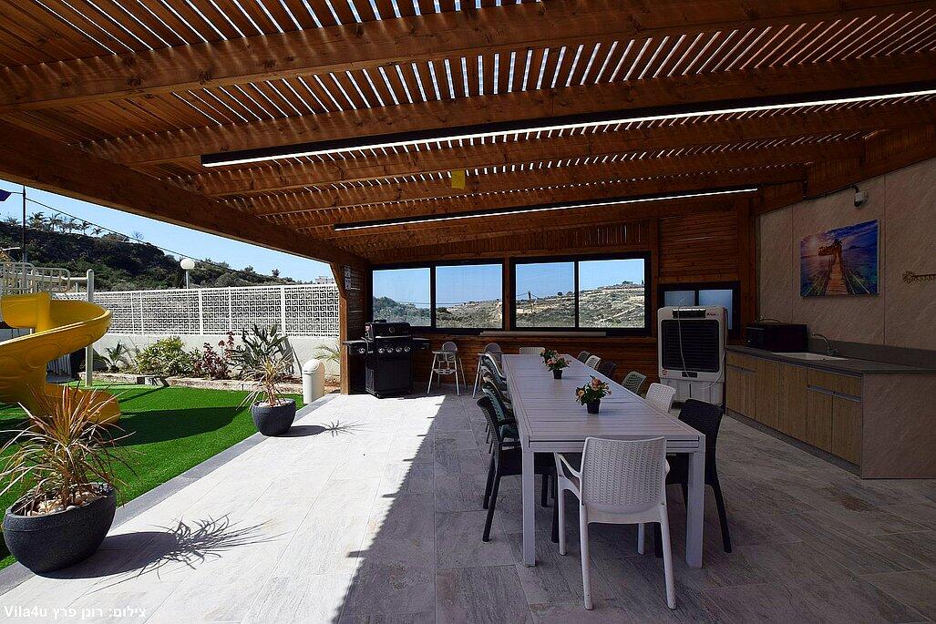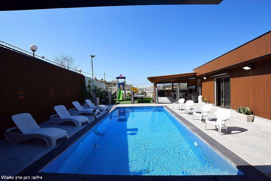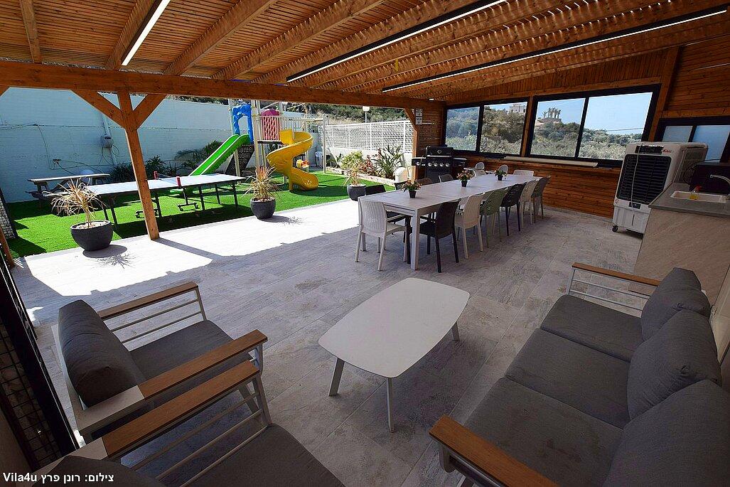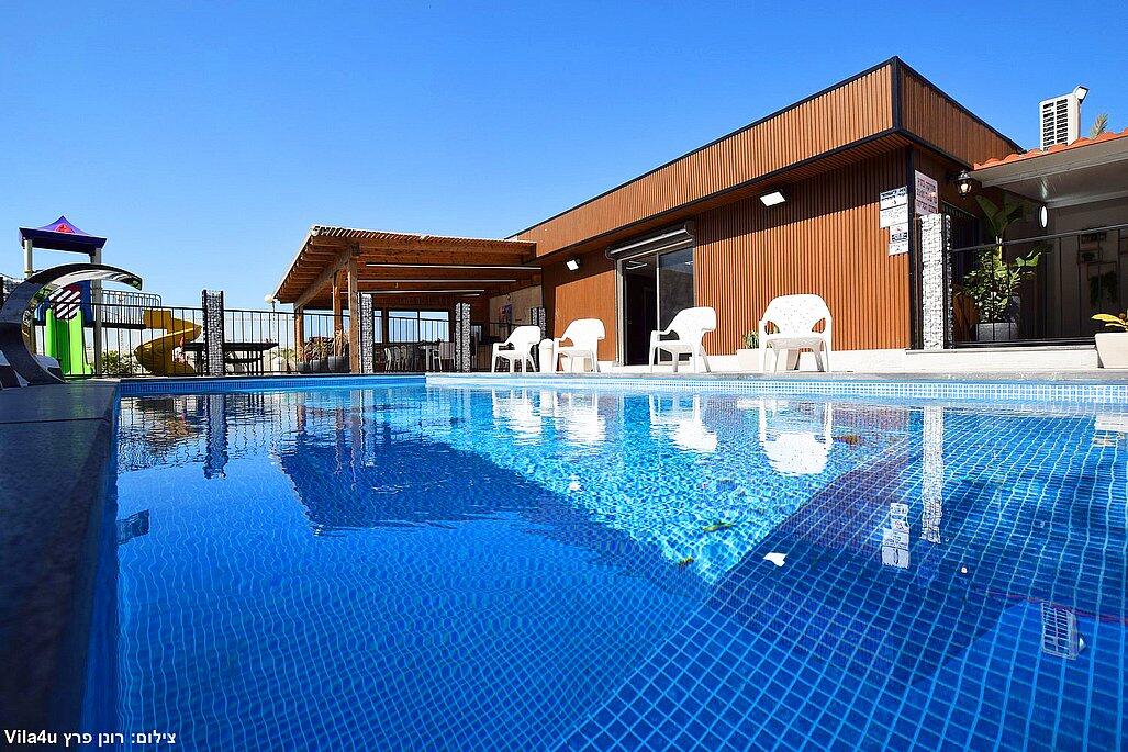 וילה מדהימה עם חשיבה על הנאה לכל הגילאים החל מחצר ענקית ומטופחת עם גן שעשועים, בריכה גדולה מחוממת ומקורה, שולחנות משחק, פינות ישיבה וכמובן האירוח המדהים המאפיין כל כך את ירכא