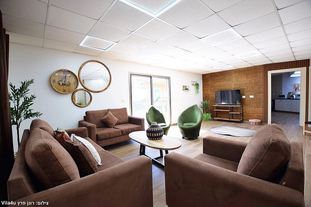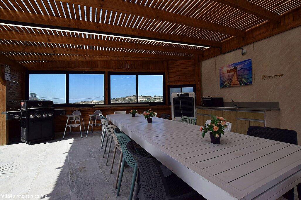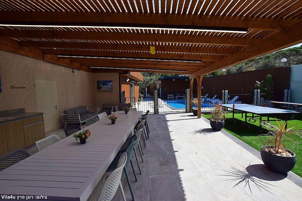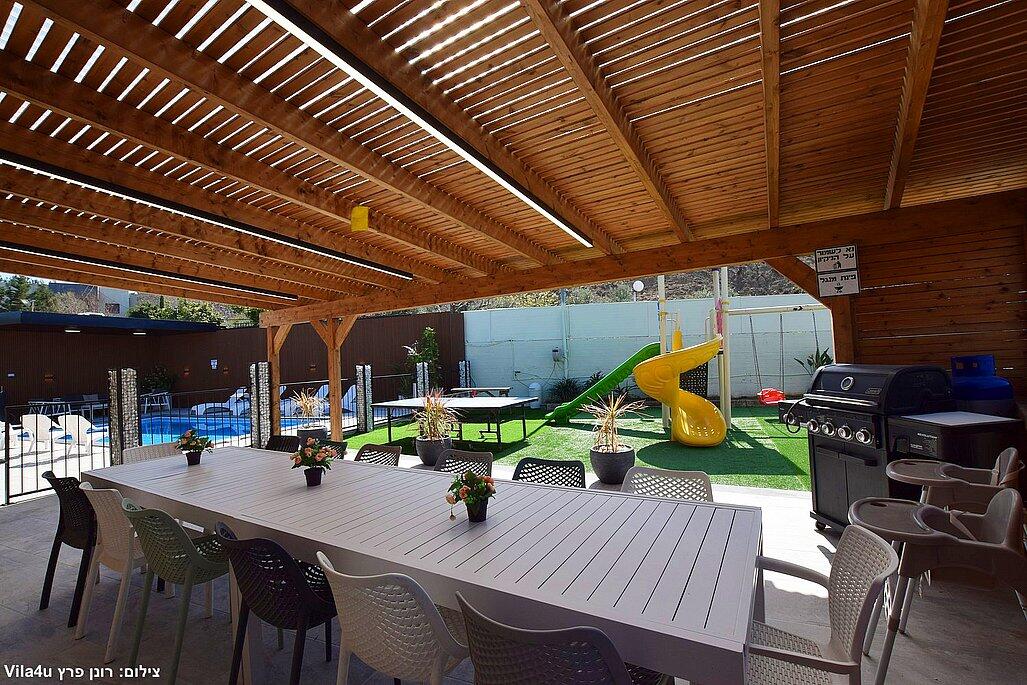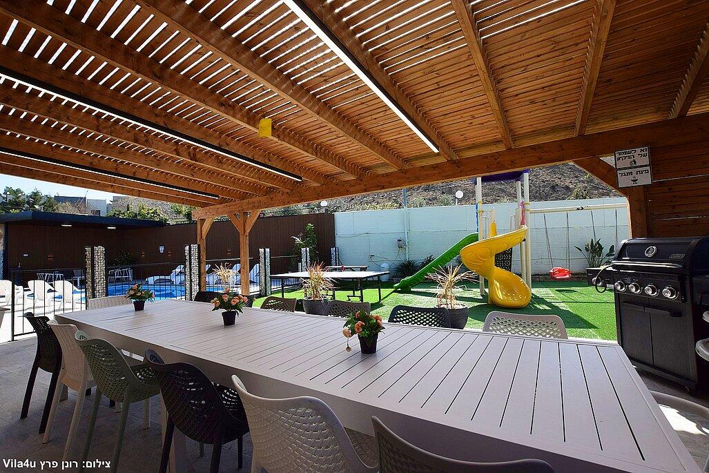 וילה מדהימה עם חשיבה על הנאה לכל הגילאים החל מחצר ענקית ומטופחת עם גן שעשועים, בריכה גדולה מחוממת ומקורה, שולחנות משחק, פינות ישיבה וכמובן האירוח המדהים המאפיין כל כך את ירכא