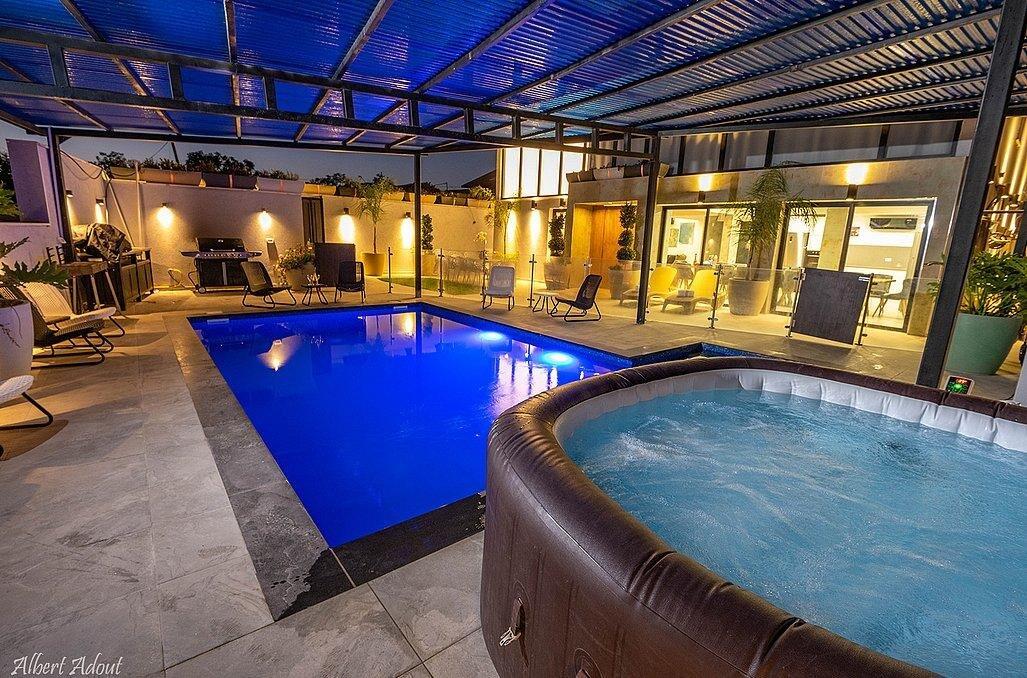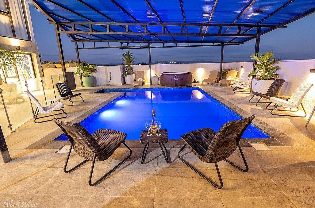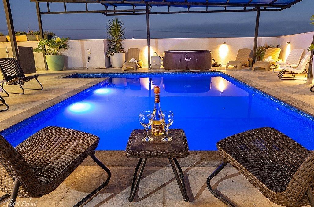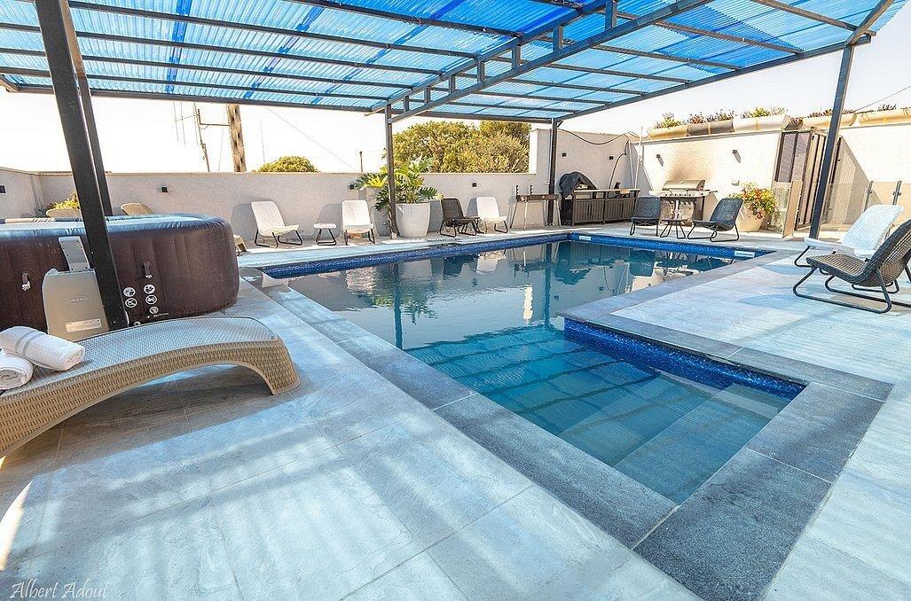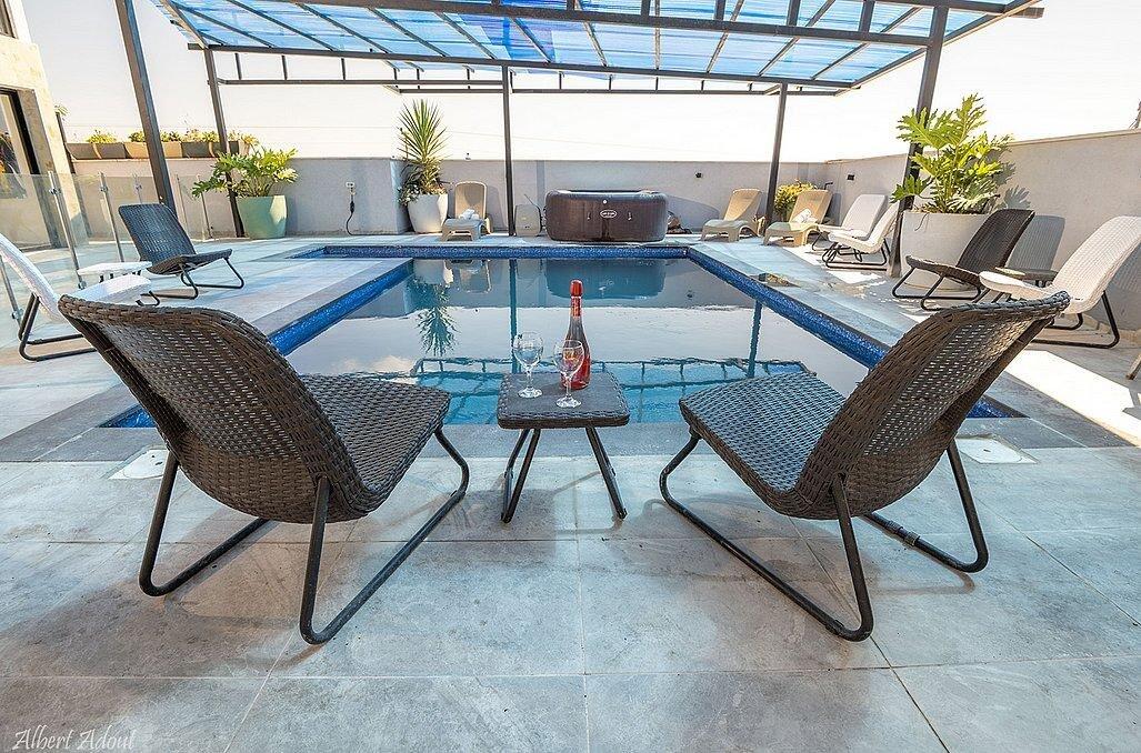 המתחם החיצוני כולל ג’קוזי ספא, שולחן סנוקר, פינת מנגל ונוף גלילי עוצר נשימה לחופשה ברמה אחרת בגליל.