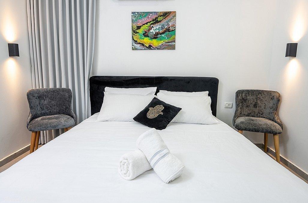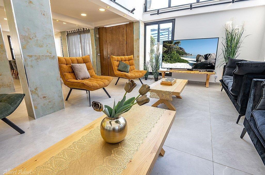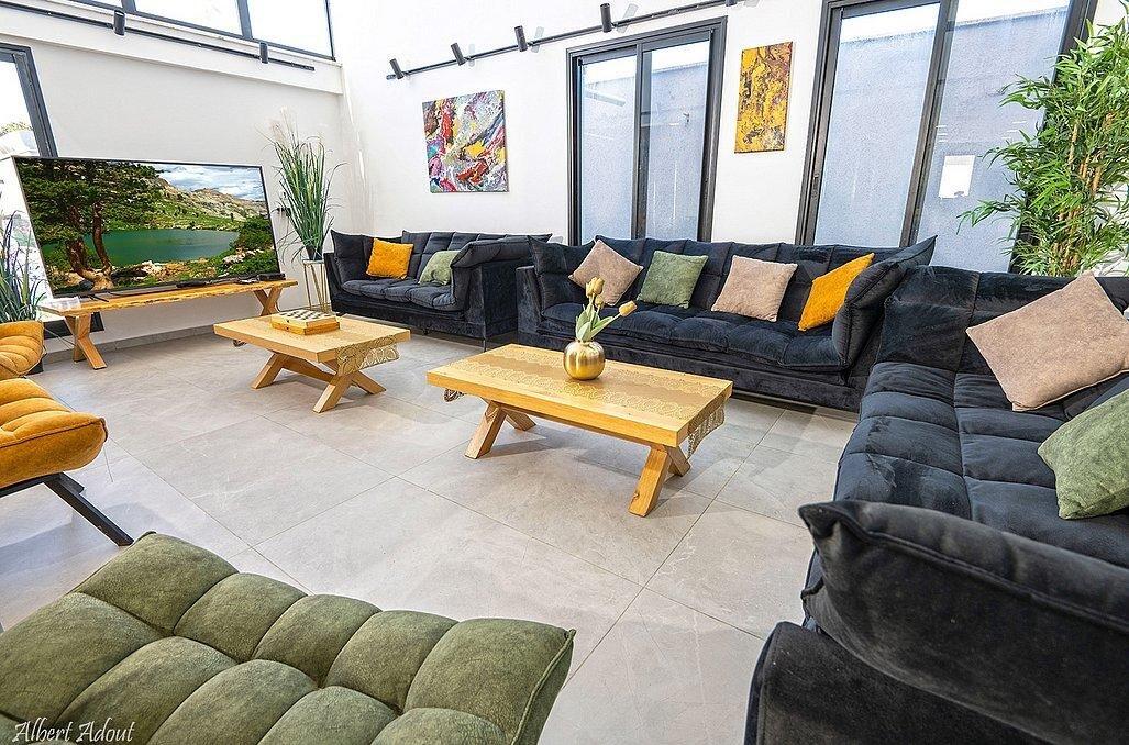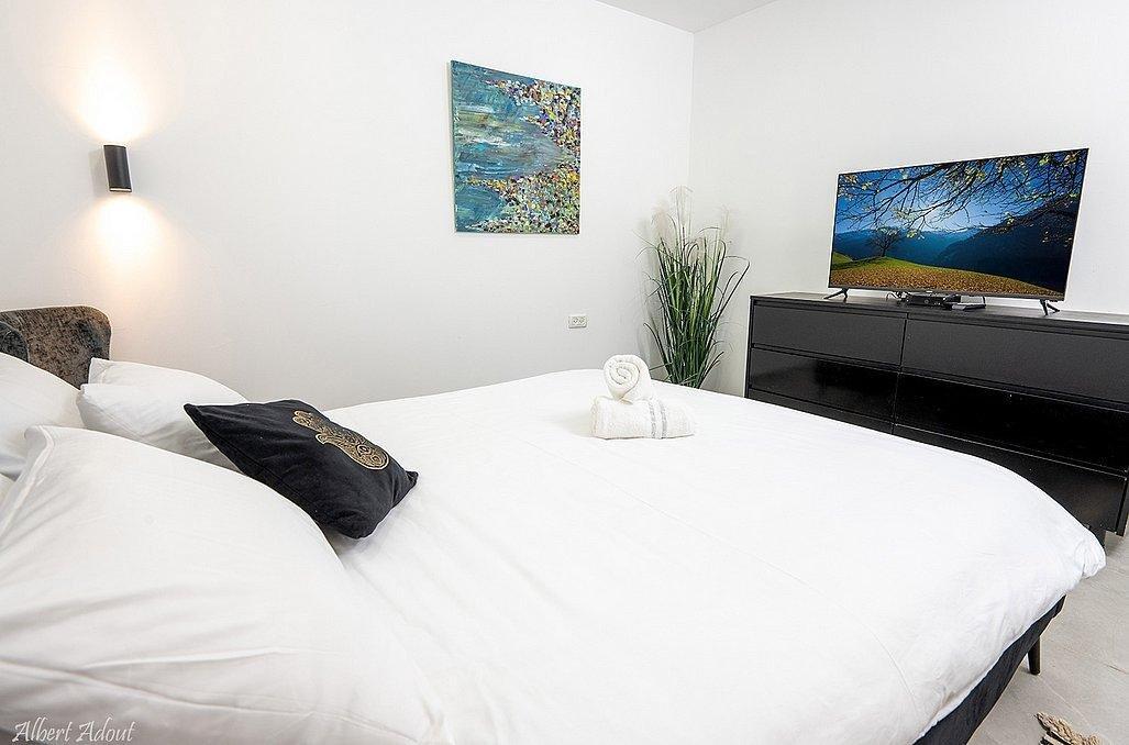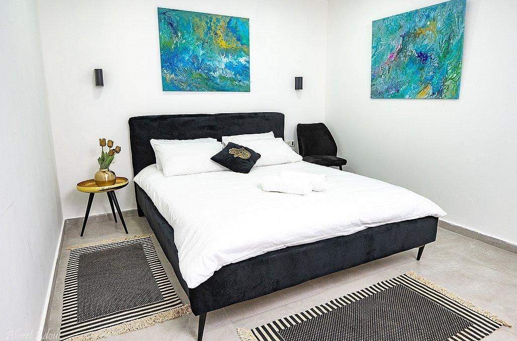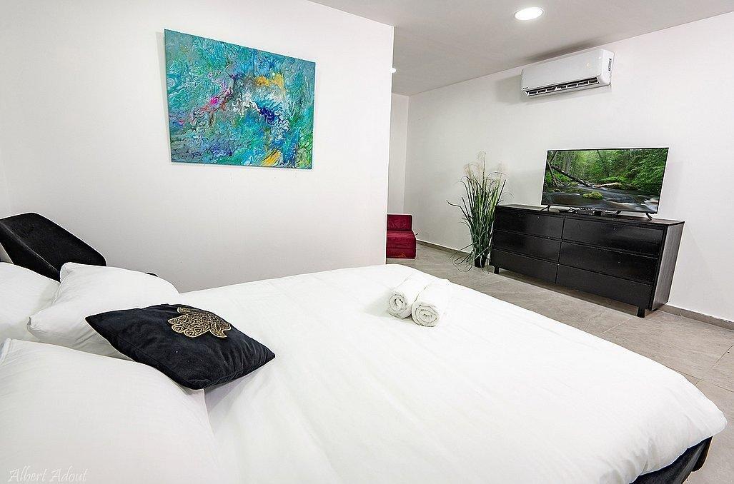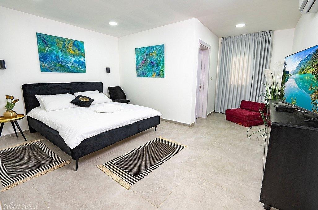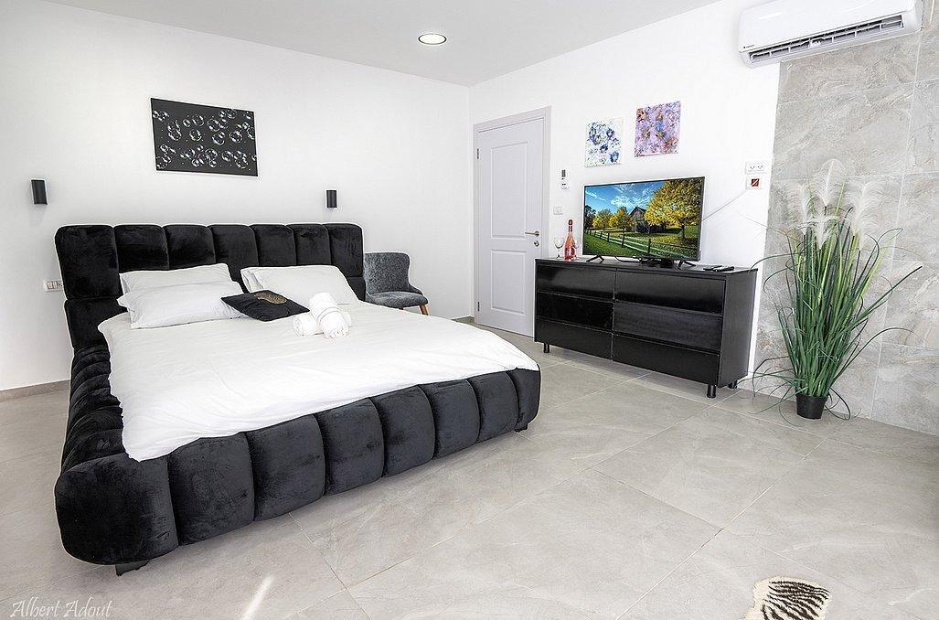 תיהנו ממטבח מאובזר במלואו, סלון ענק עם מסך צפייה גדול, פינת אוכל רחבה וחדר רחצה פרטי בכל חדר.