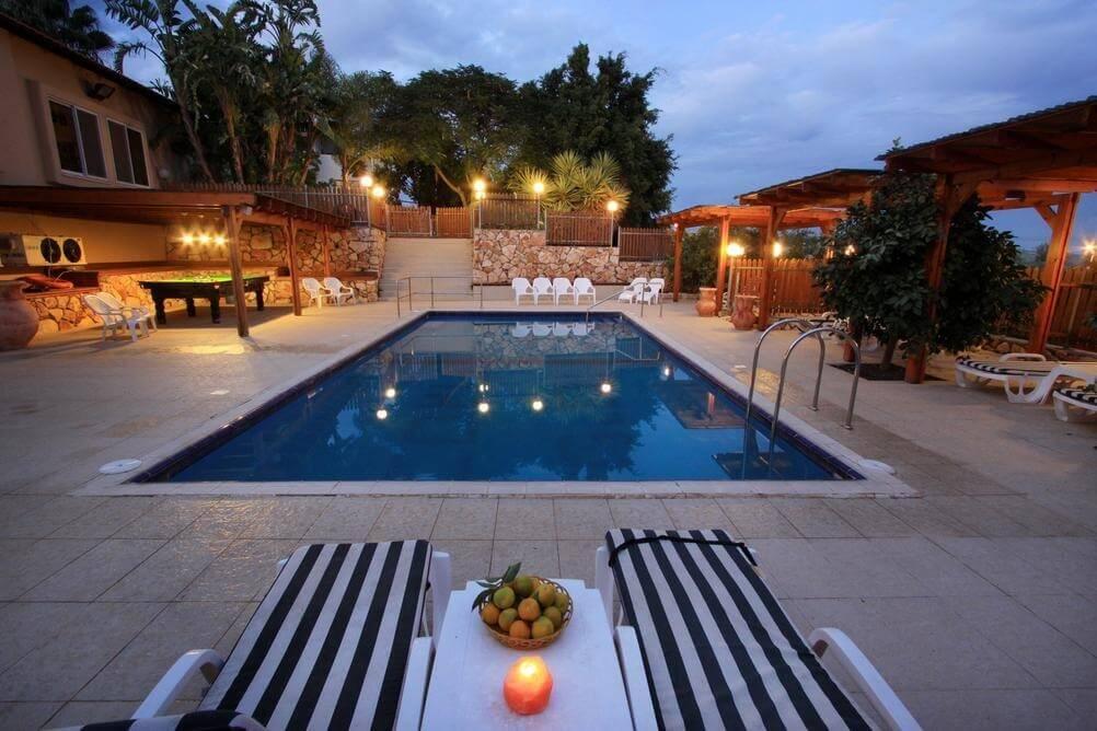 המתחם בנוי מוילה משפחתית, מיני וילה ועוד 3 צימרים ויכולה להכיל עד 45 אורחים ביחד.